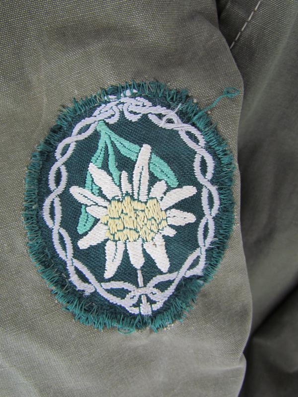 A machine sewn Gebirsjäger patch is also visible on the right sleeve.