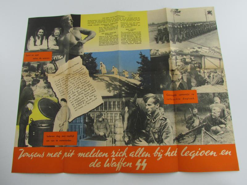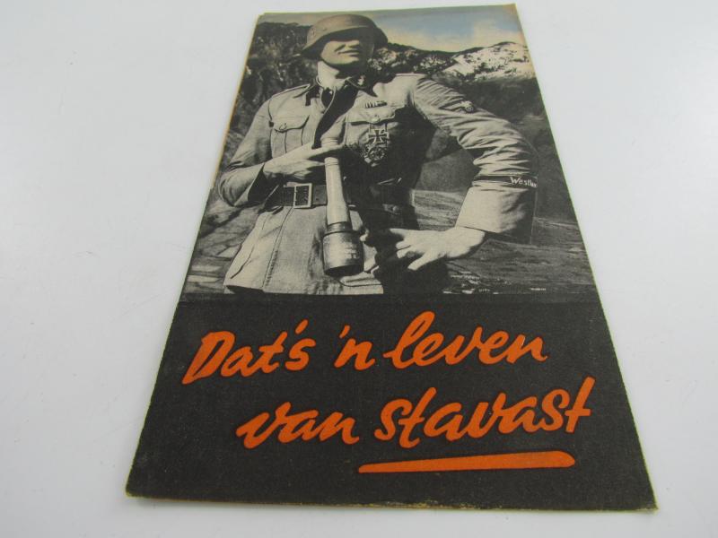 This is a nice original Dutch Waffen-SS recruitment flyer/poster: "Dat's 'n leven van stavast", used to recruit Dutch men for the Dutch volunteer legion and/or Waffen-SS