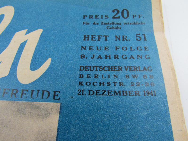 a nice period issue of the magazine Koralle. with interesting period photos and articles inside. Dated 21 December 1941 in used but good condition