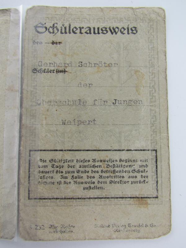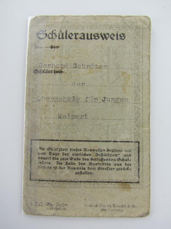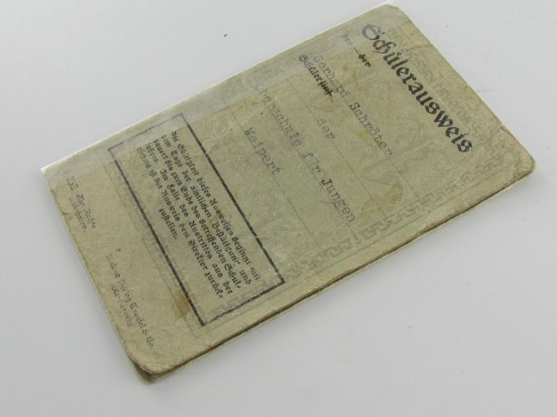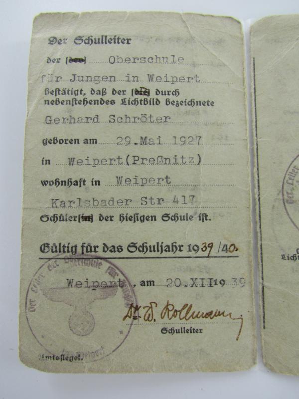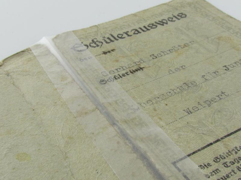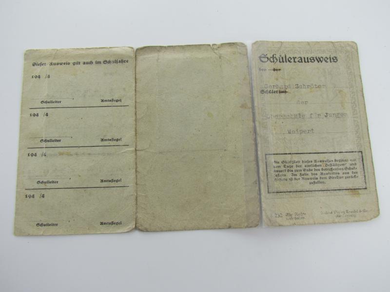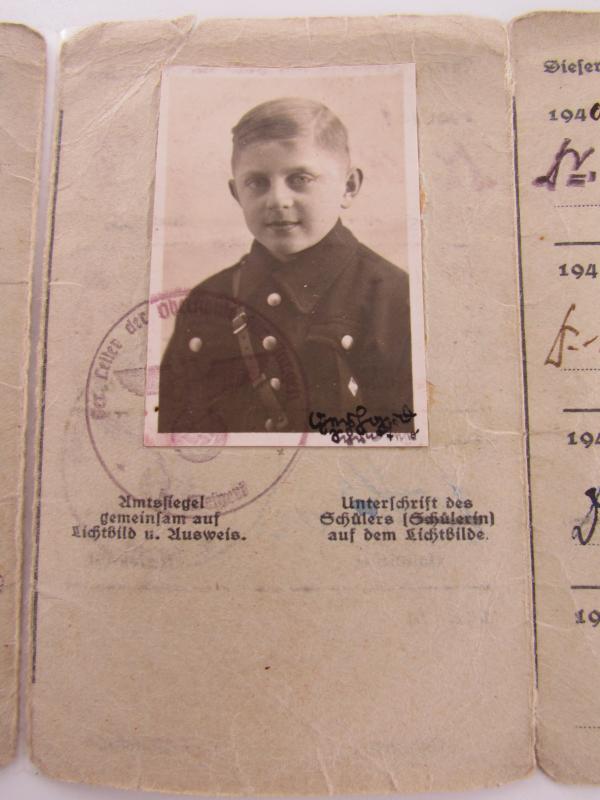 A very nice Hitler Youth Student ID Card ( Schülerausweis )with a picture of the former owner included See pictures for condition