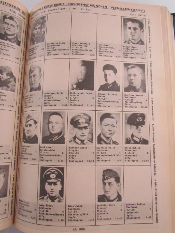 The missing person picture lists were created at the end of the 1950s by the DRK tracing service at the request of all searchers registered with it to send in photos of their missing relatives. These photos with the names are arranged according to troop units and camp locations, compiled into picture lists and printed from December 1957.