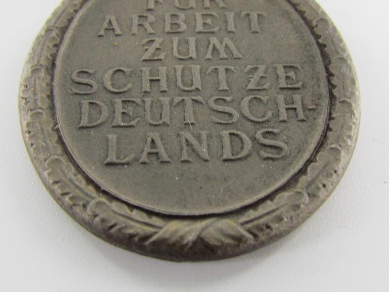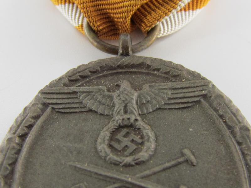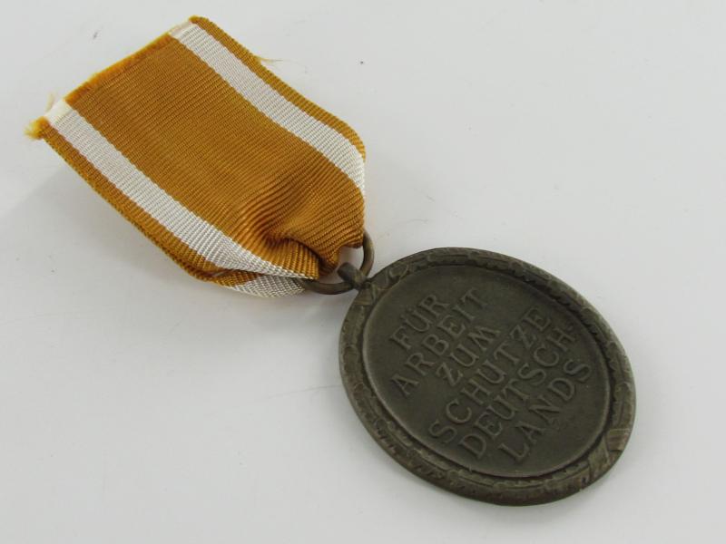 The Westwall medal was instituted by Adolf Hitler on 2 August 1939 for military personnel, and civilian employees, who assisted in the planning and construction or defence of the German fortifications on the western border of Germany.