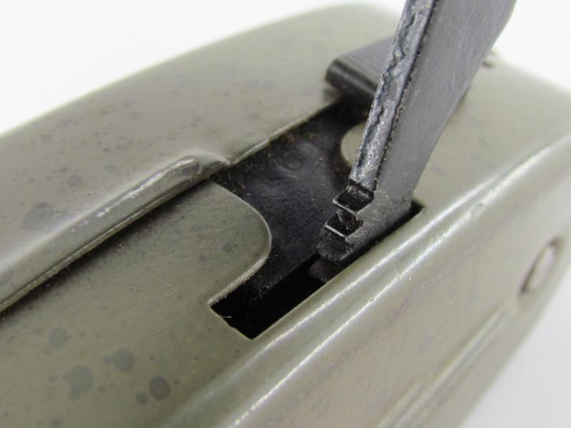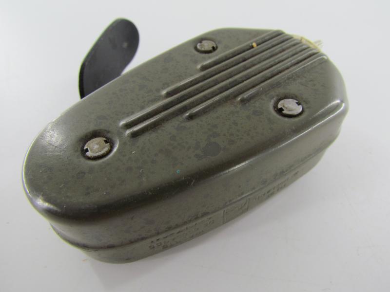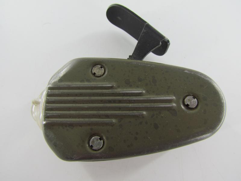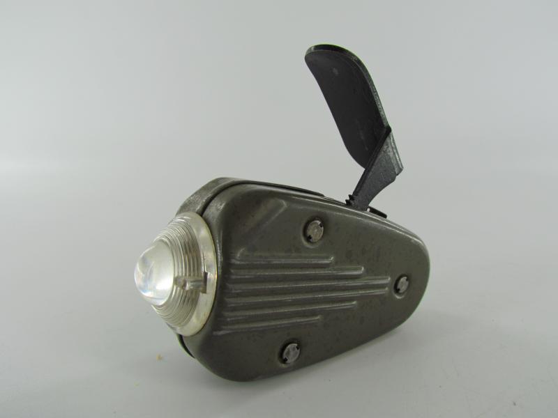 A very nice wartime “Knijpkat” torch. These flashlights where made utilizing forced labour from Konzentrationslager Herzogenbusch. Unlike most of the wartime used flashlights the “knijpkat” doesn’t have a battery but uses a small internal dynamo.