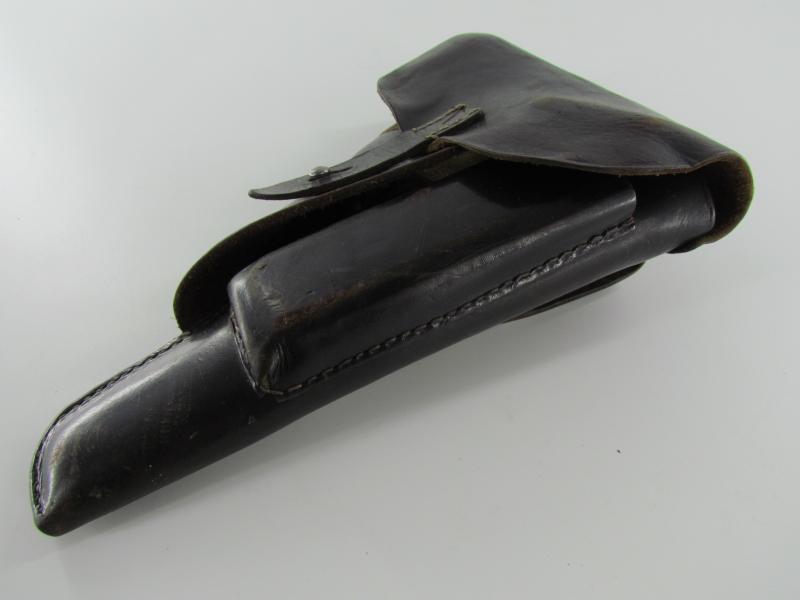 Original late-war German softshell holster for the P38 in excellent condition. This example is nicely marked with the maker's code and date 'cey 4' to the rear, indicating manufacture by Karl Budischovsky u. Soehne, Oesterreichische Lederindustrie AG, Vienna, in 1944.