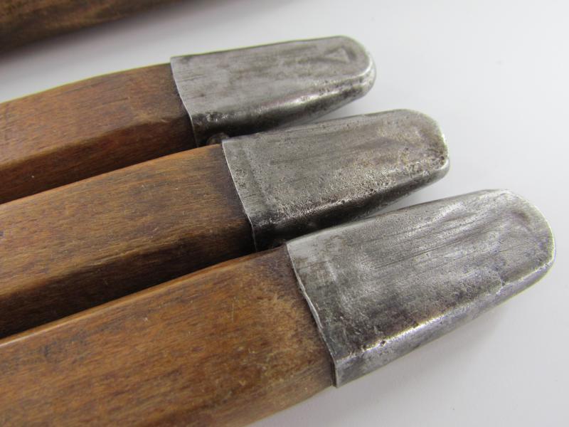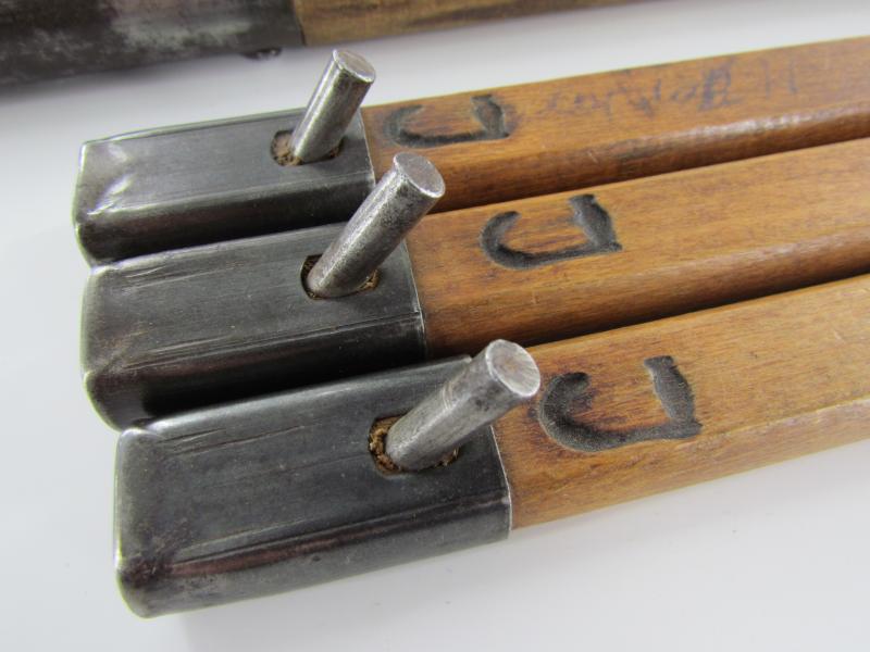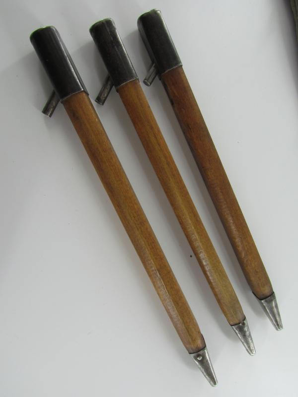 3x Pre War and 1x Wartime Wehrmacht Wooden Tent Pegs in original bag in used but very good condition
