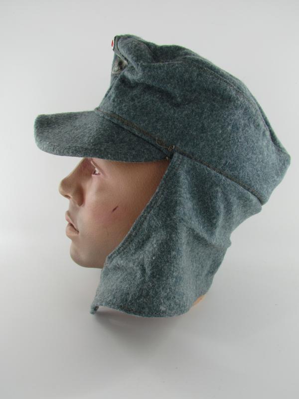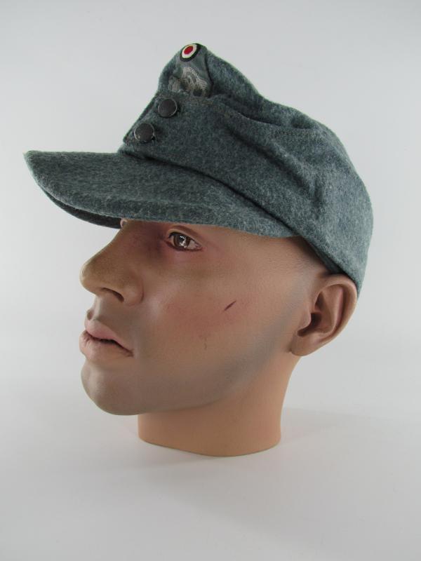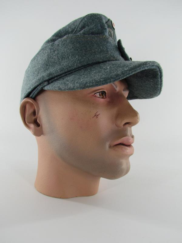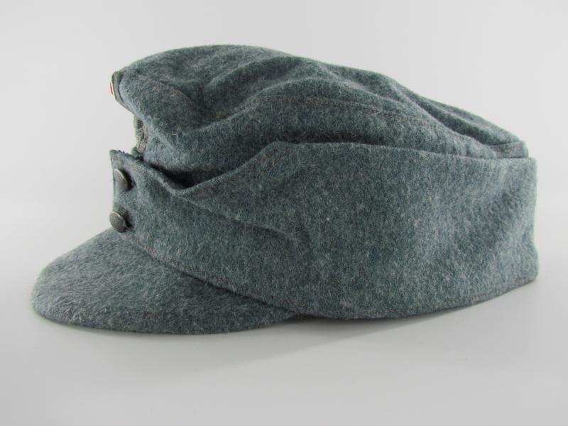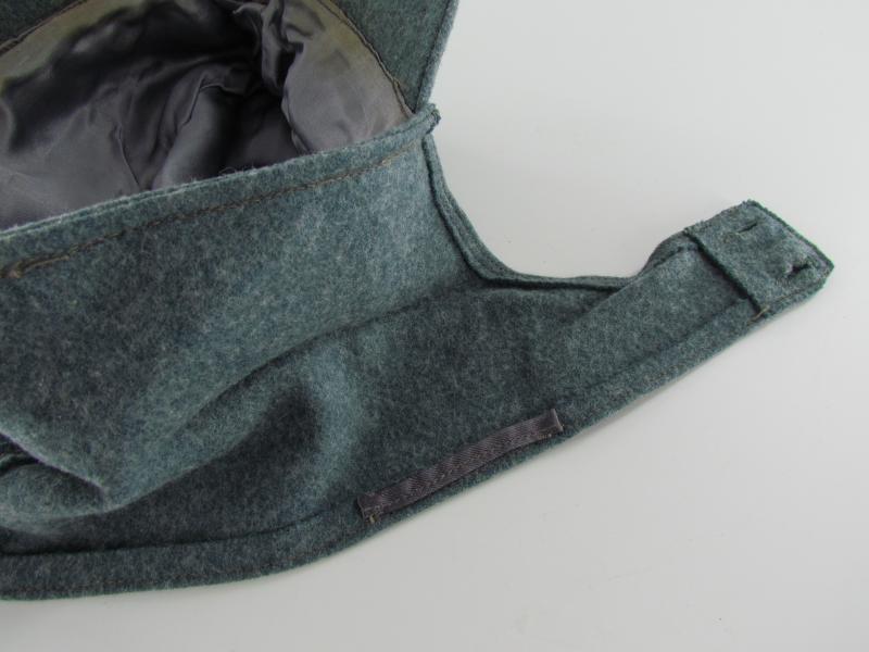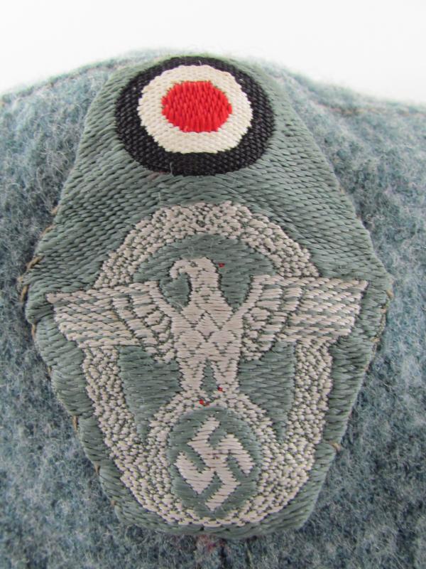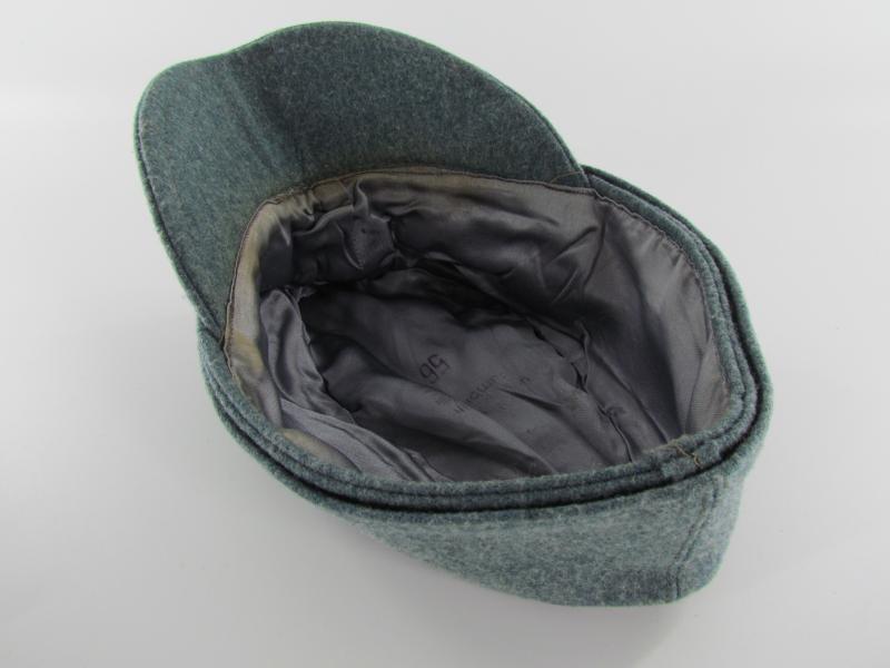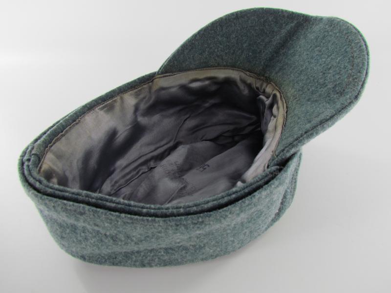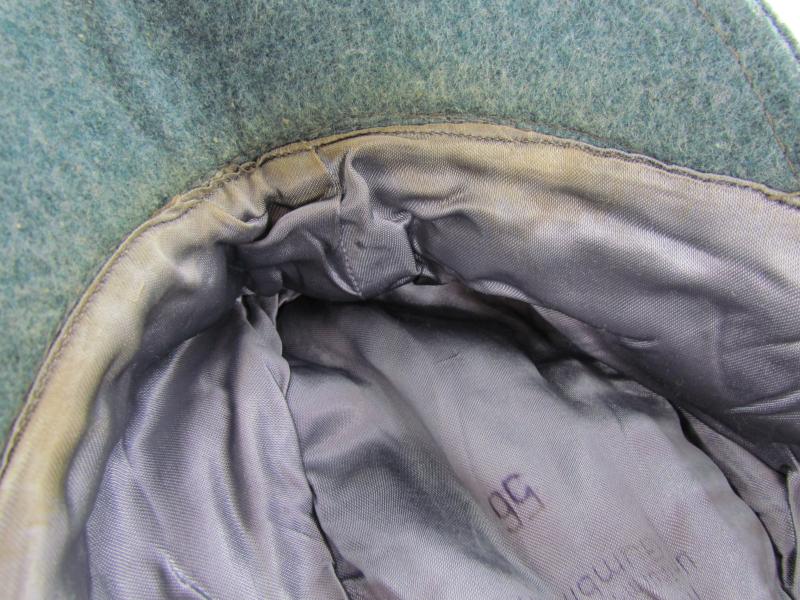 A light worn M43 cap executed in wool. Period applied police ‘BeVo’cap insignia up front. The interior is executed in silk and size marked 56. Beautiful untouched and original Police M43 cap!