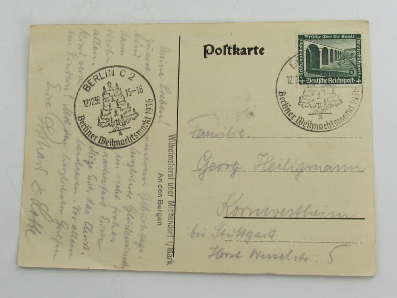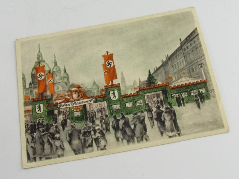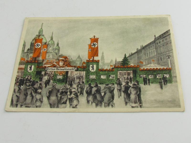 This is a nice original period color postcard (Postkarte) showing an artistically drawn Christmas Market in Berlin with the famous 'Berliner Dom' in the background. Posted condition !