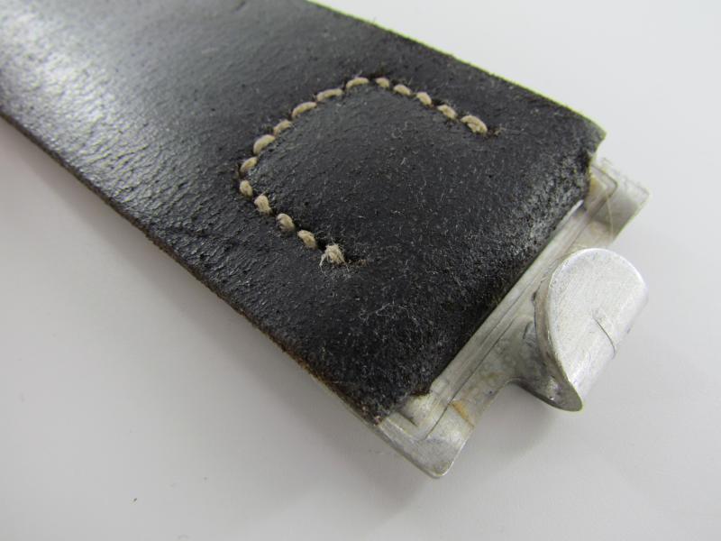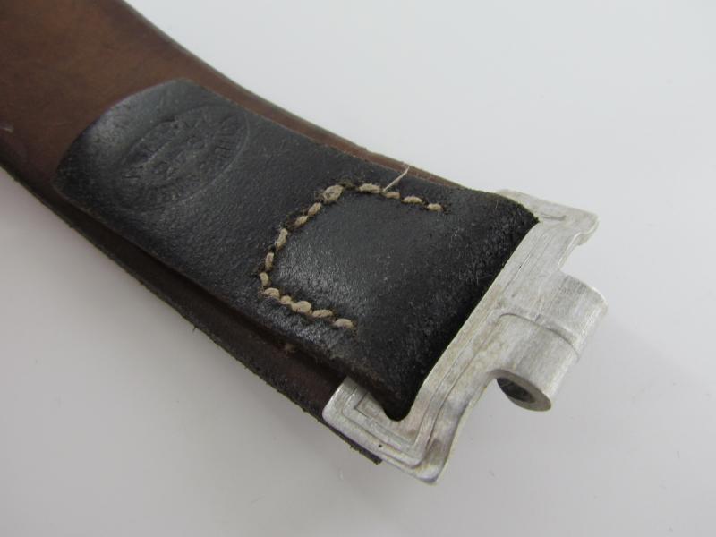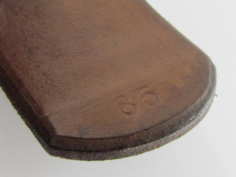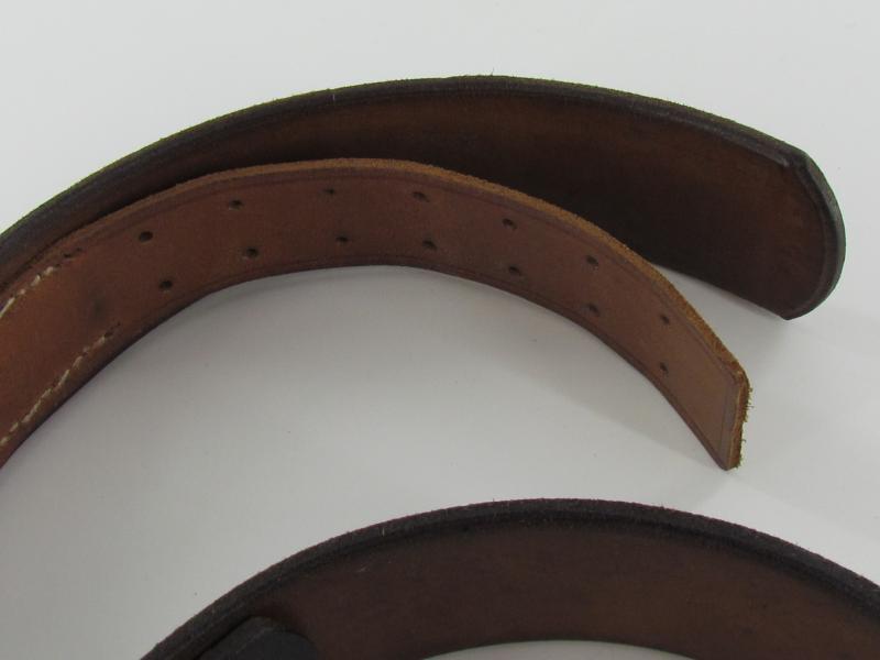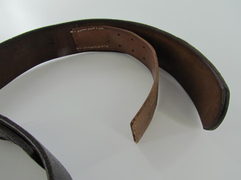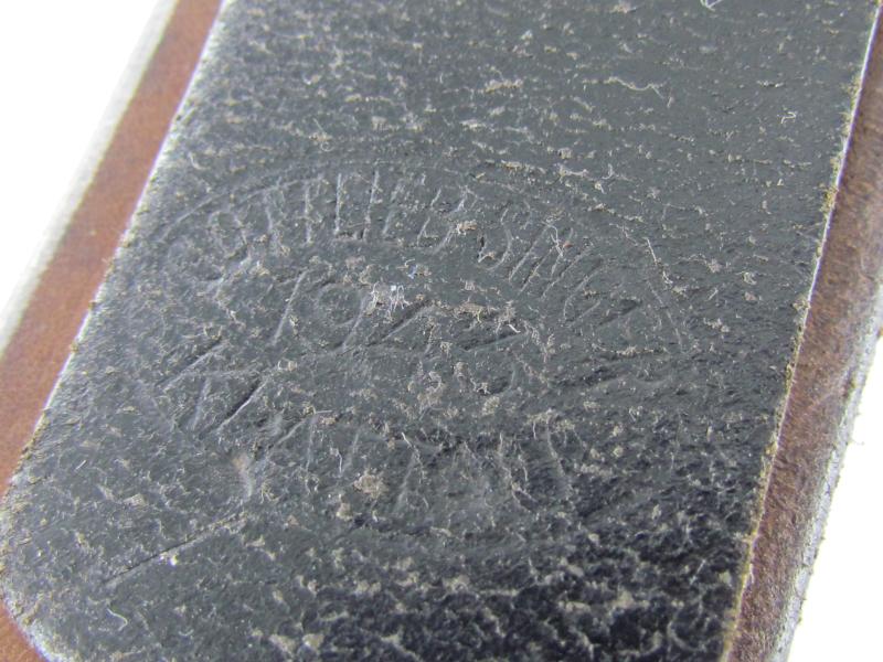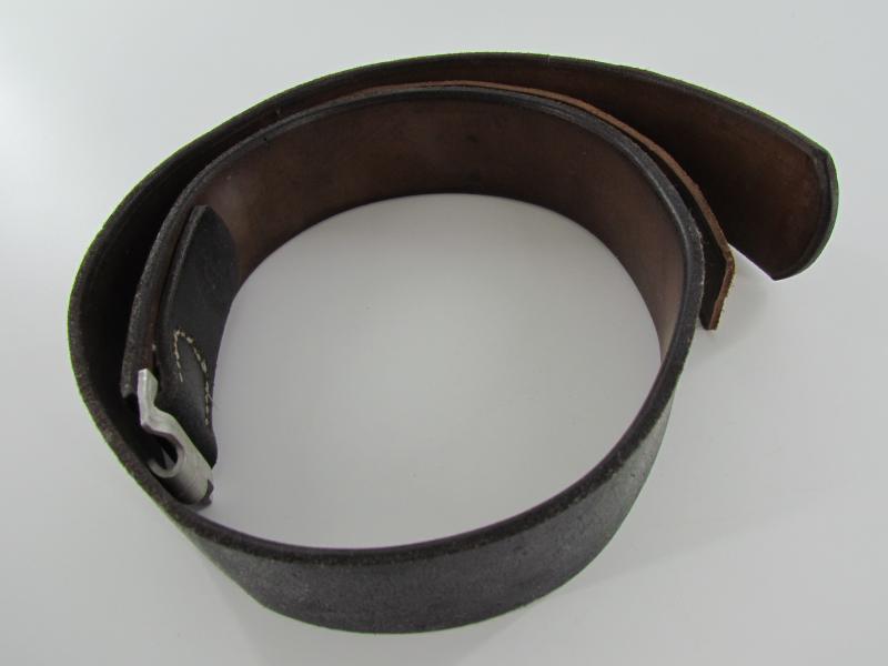 Well preserved leather equipment belt in strong and supple condition. Length 85cm Maker marked but faded, dated 1943. In a very good condition