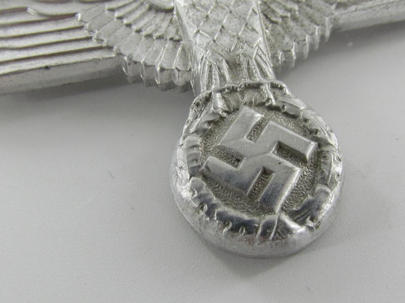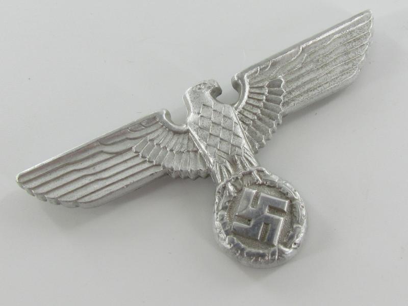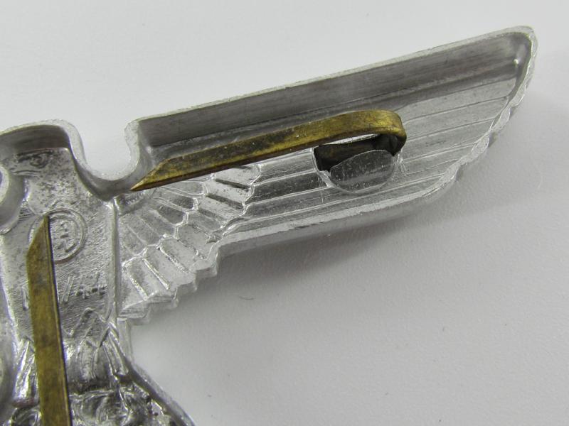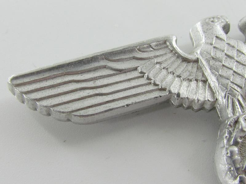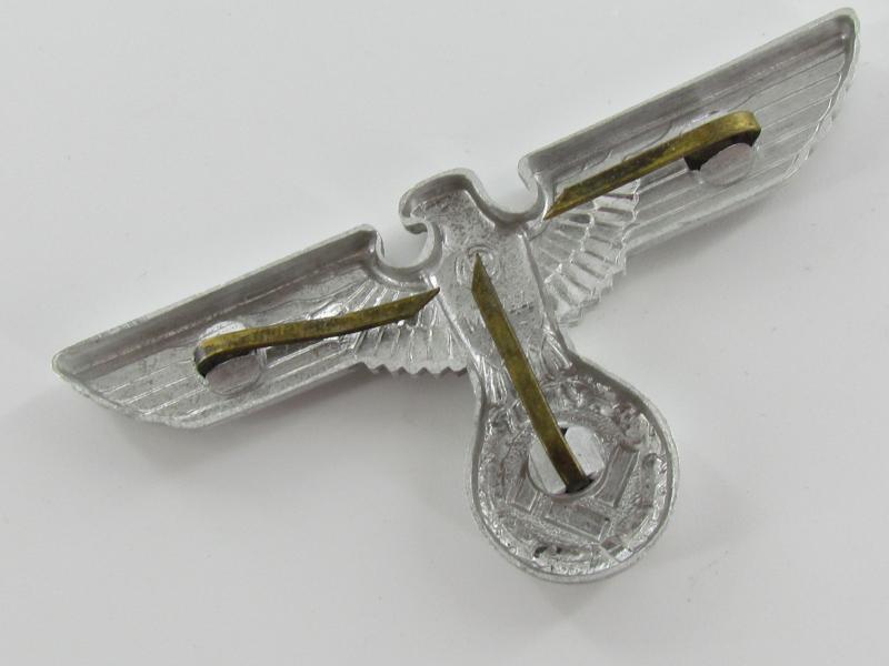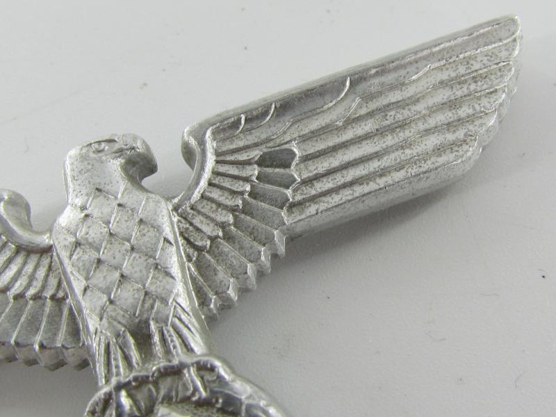 NSDAP political cap eagle – RZM M1/44 ( C. Dinsel, Berlin.) Aluminum cap eagle with crimped in prongs, unissued condition!