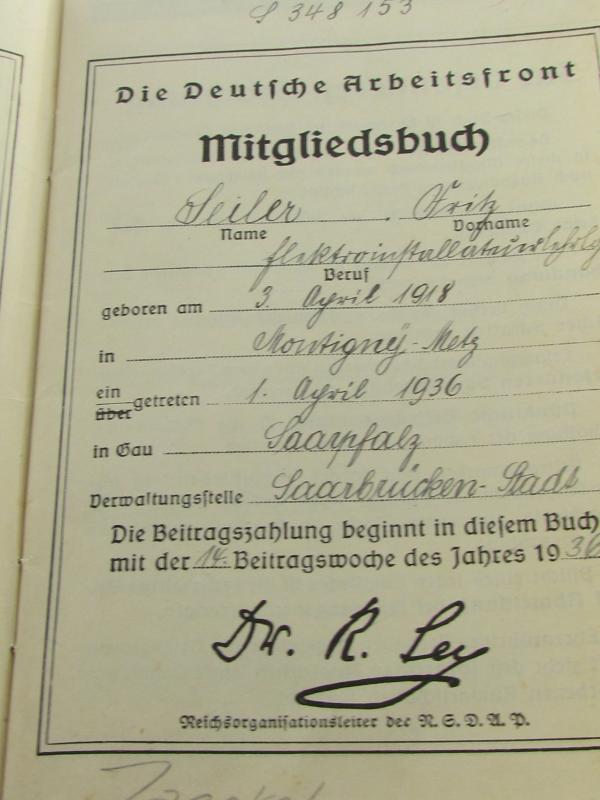 German DAF ( Arbeidsfront ) Mitgliedsbuch