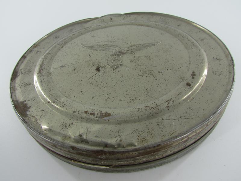 It comes in its silvered tin canister, die-stamped Luftwaffe eagle on the lid and also on the aluminum film roll