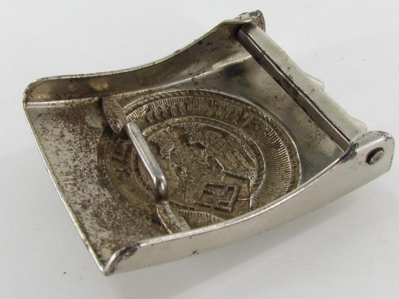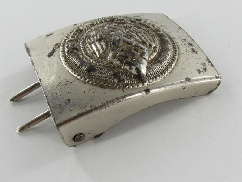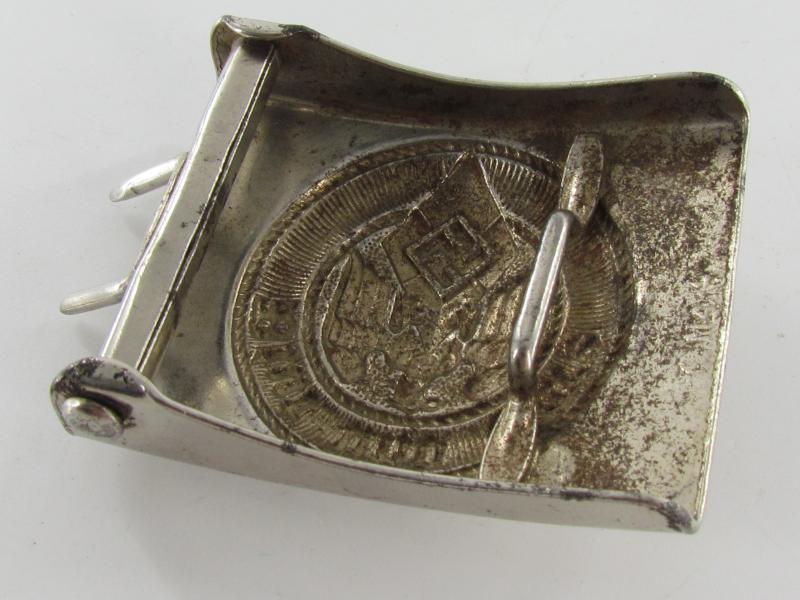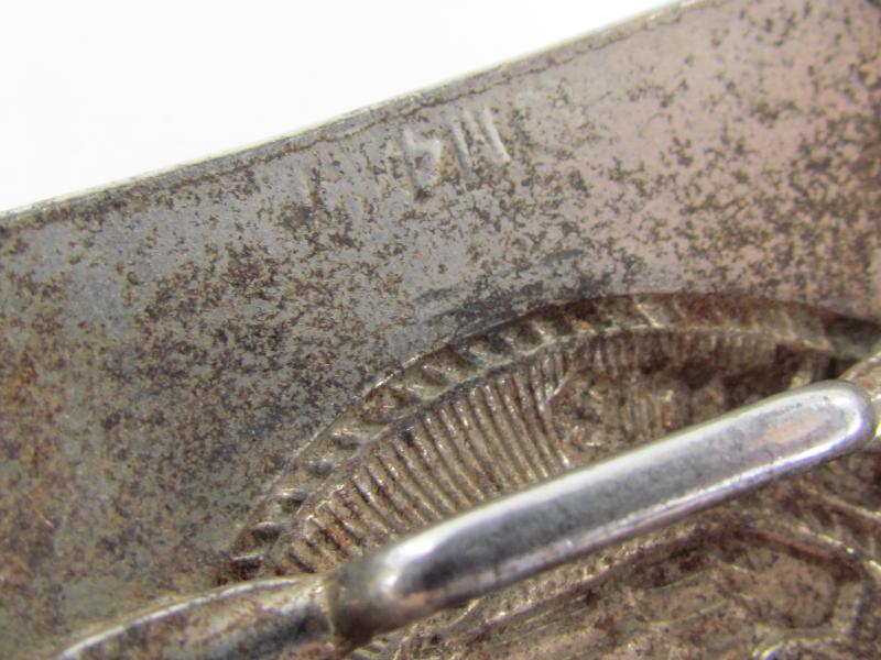 The steel buckle is marked but hard to read