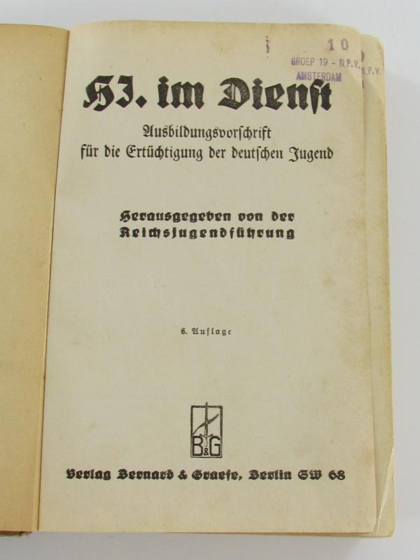 'H.J. im Dienst - Ausbildungsvorschrift für die Ertüchtigung der deutschen Jugend' Handbook. This book was published in 1940 by the "Verlag Bernard & Graefe" in Berlin
