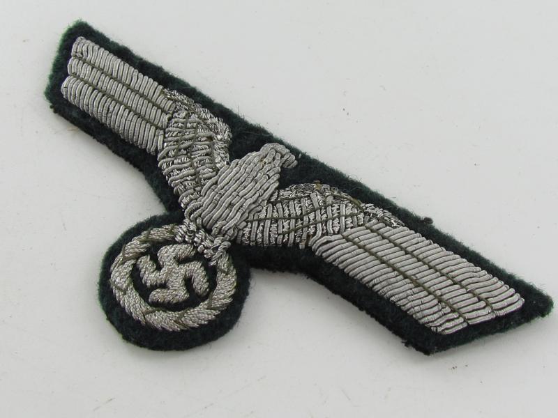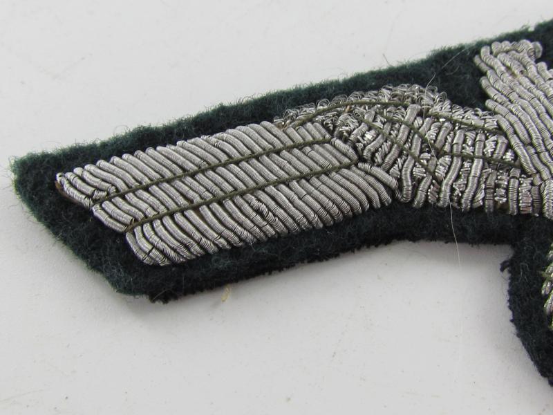 This is a nice example of a hand-embroidered Wehrmacht (Heer) Officer's breast-eagle (Hoheitsabzeichen). Nice example in unissued condition, perfect to restore a Wehrmacht officer's tunic with!