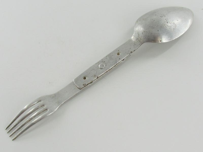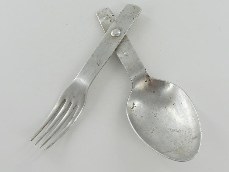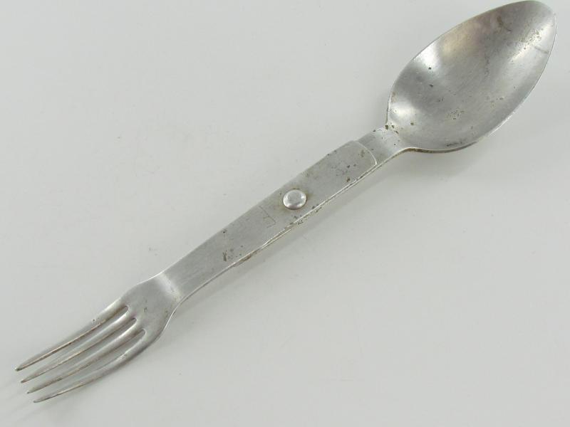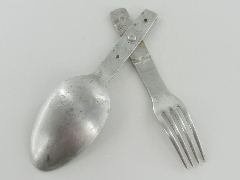 Original aluminum spoon and fork combination no markings found It's in nice used condition.
