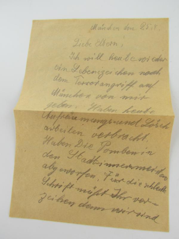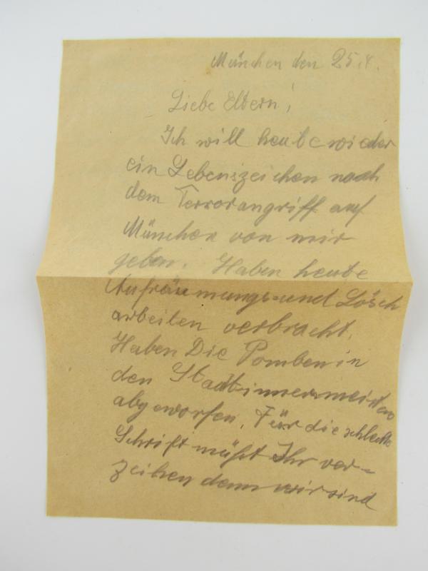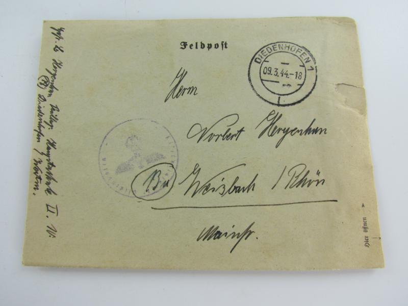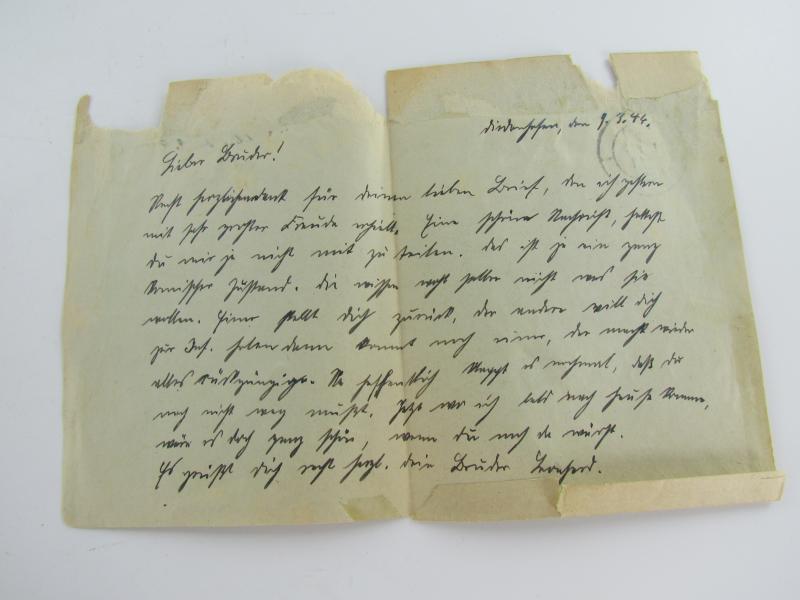 Handwritten letter from a front soldier to his family and dated 1944 Unfortunately, I can't say what it says because this handwriting is illegible to me.