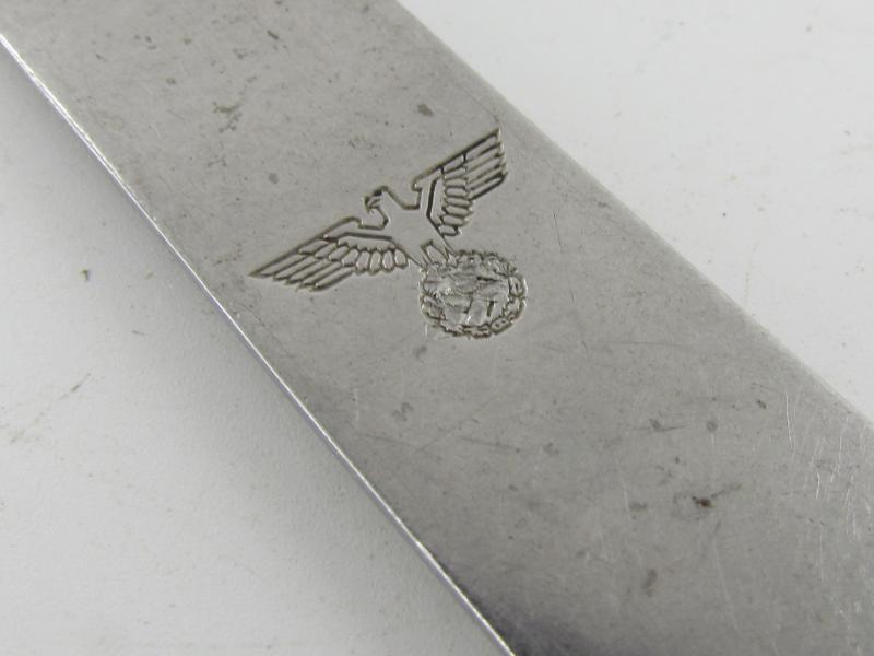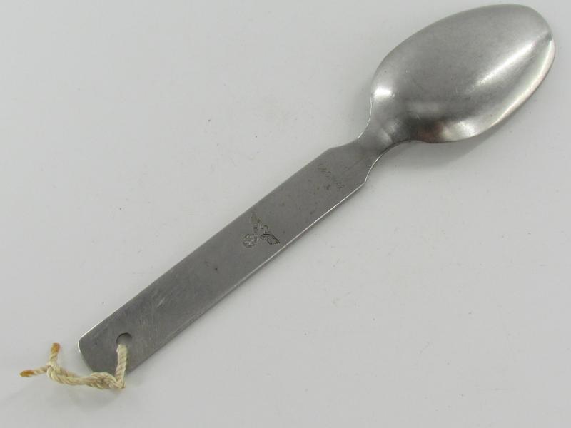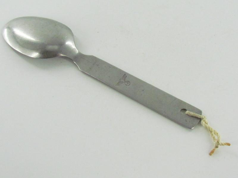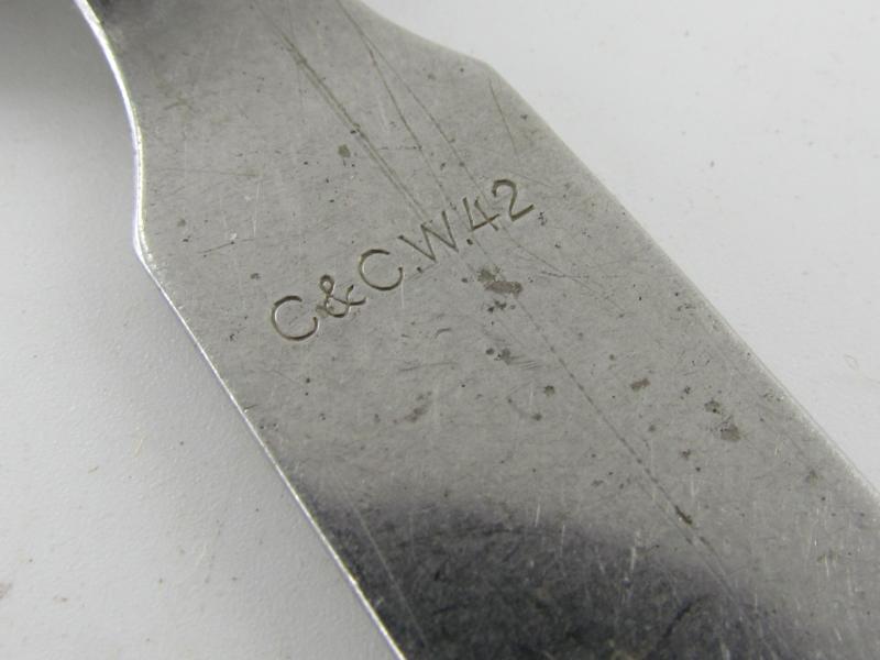 stainless steel spoon which is part of the Wehrmacht field cutlery set which were issued to enlisted men, NCO’s and officers. The spoon is nicely marked C&CW 42 which indicates production by Colsmann & Co, Werdohl in 1942.