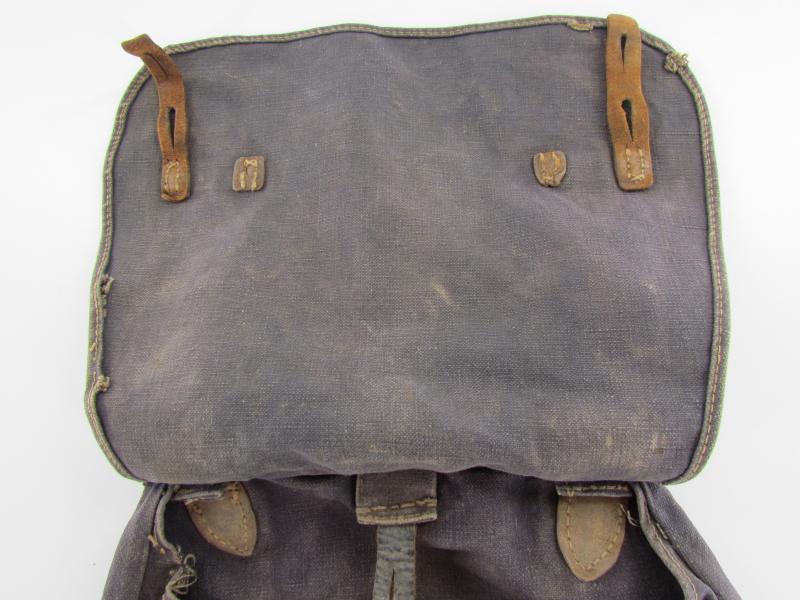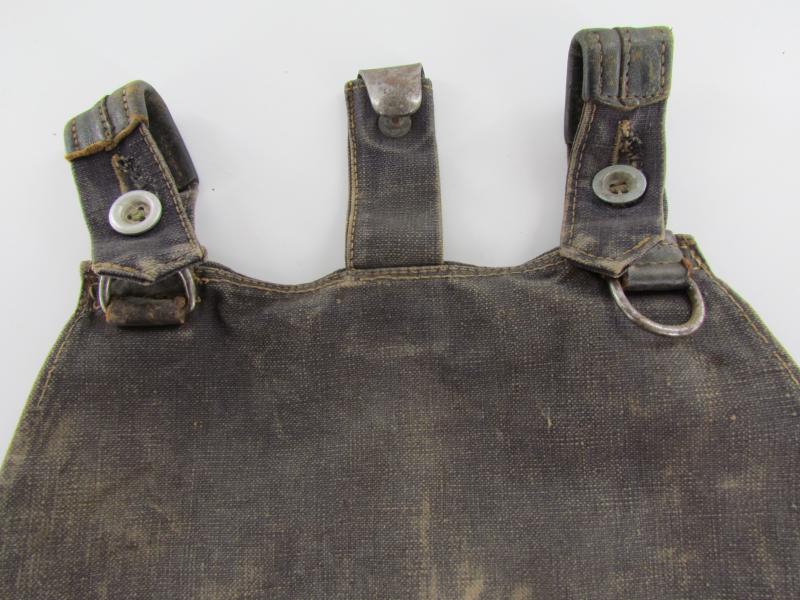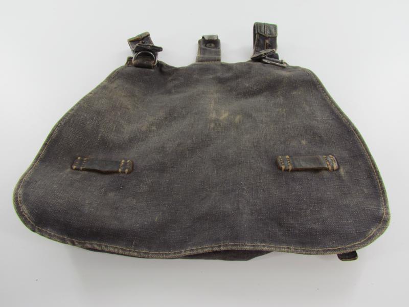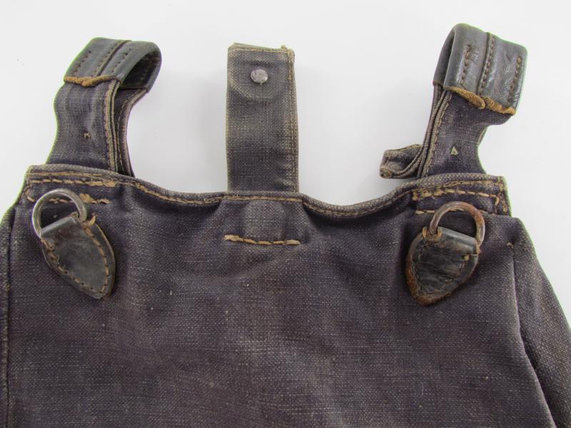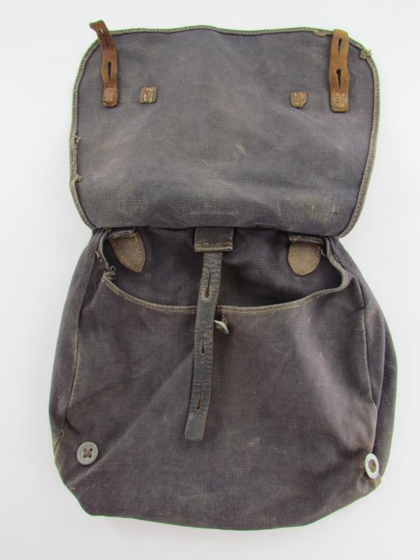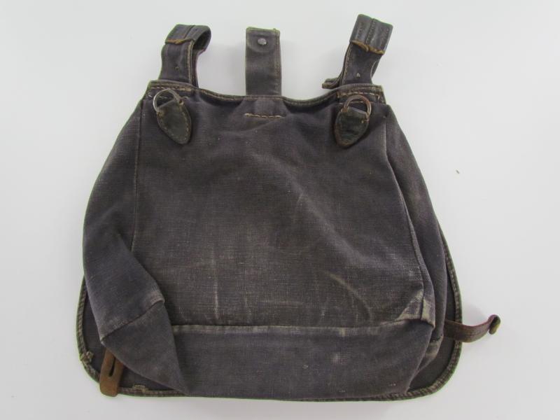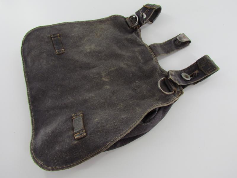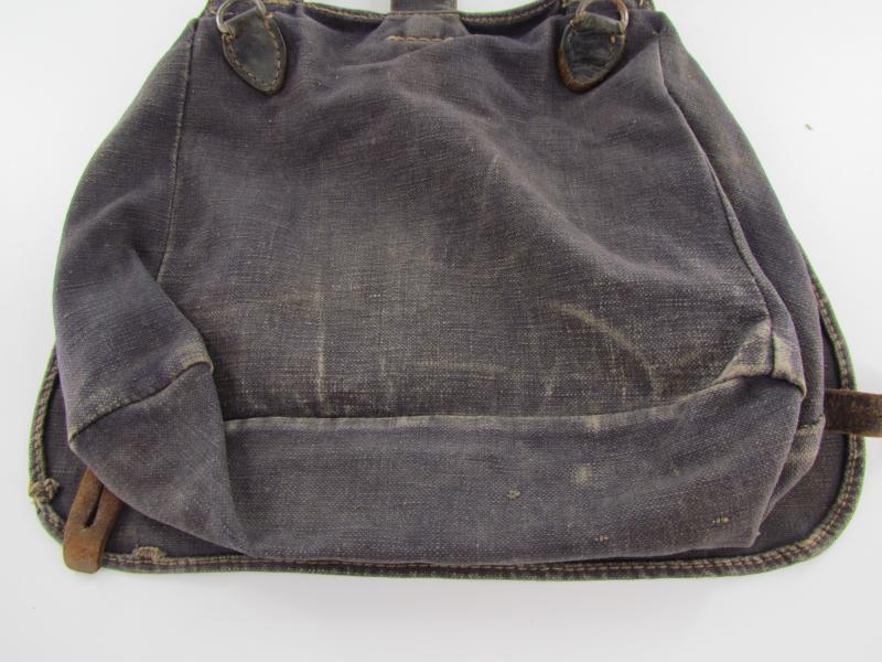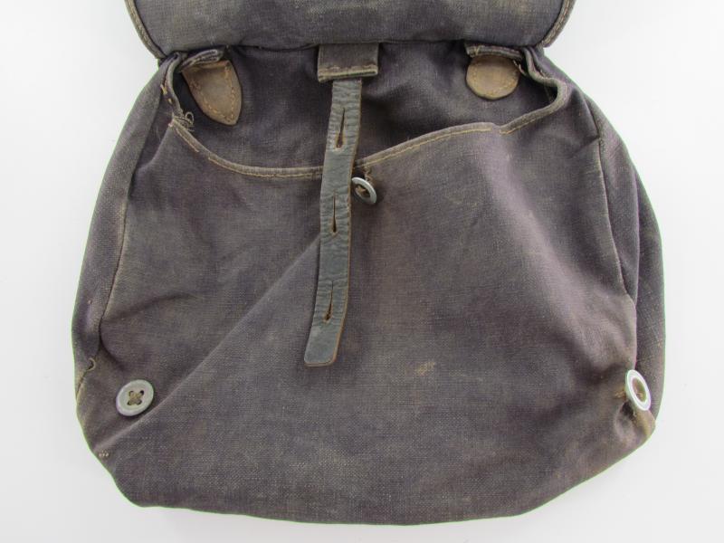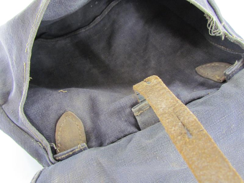 Luftwaffe Bread Bag Model 1931 (Brotbeutel 31). The blue-grey coloured breadbag is re-inforced with leather parts, Nice original Luftwaffe bread bag in used but good condition!