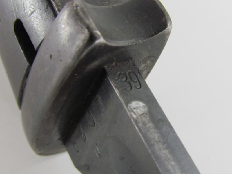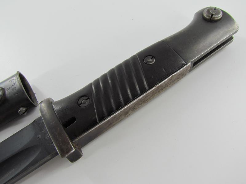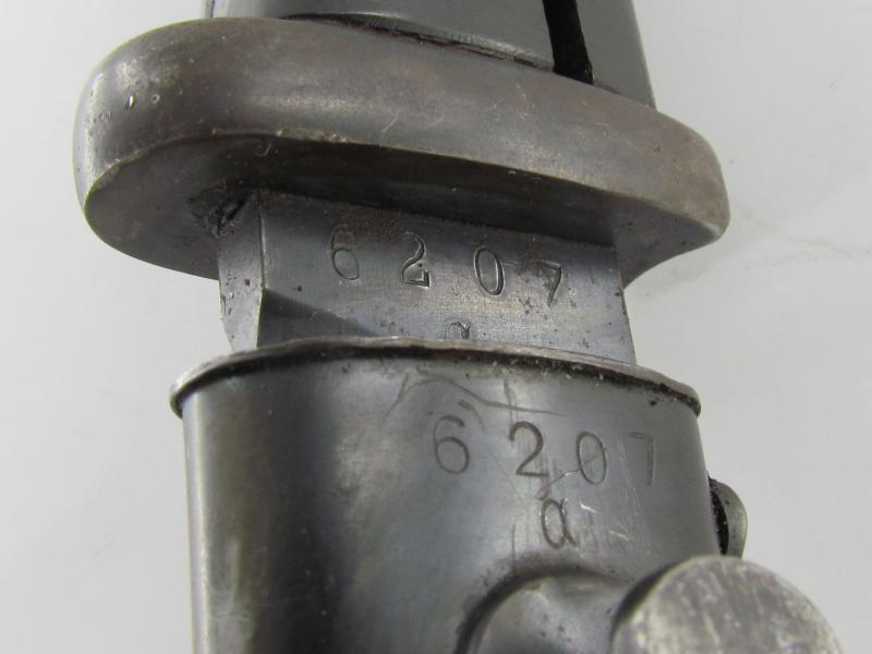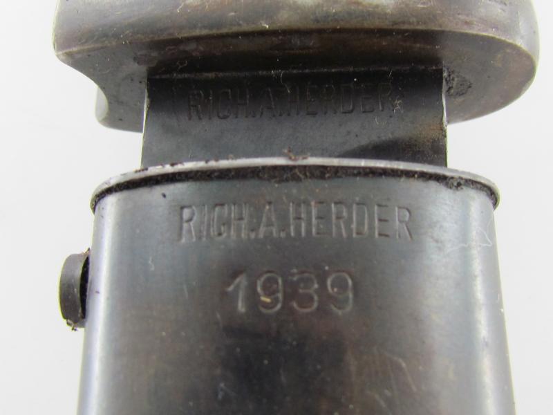 Nice and matching pre war K98 bayonet marked Rich. A. Herder 1939 with the matching serial 6207 a The bayonet is in very good condition with most of its original blueing.