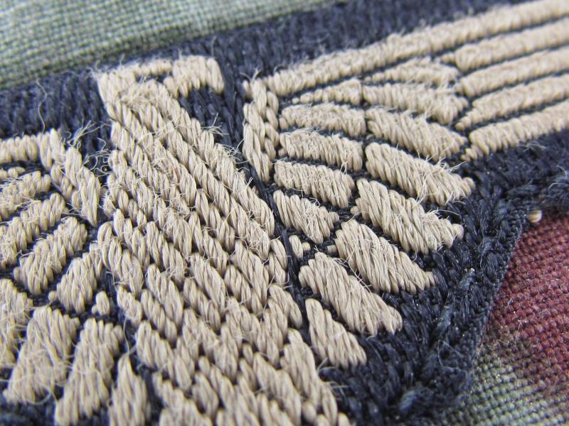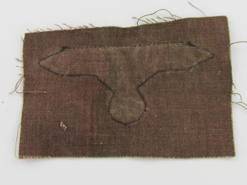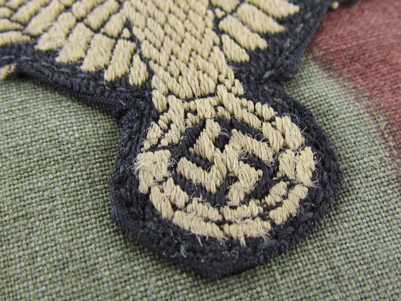 Waffen-SS sleeve eagle cut from Italian Tele mimetico madeTunic. Sold as found