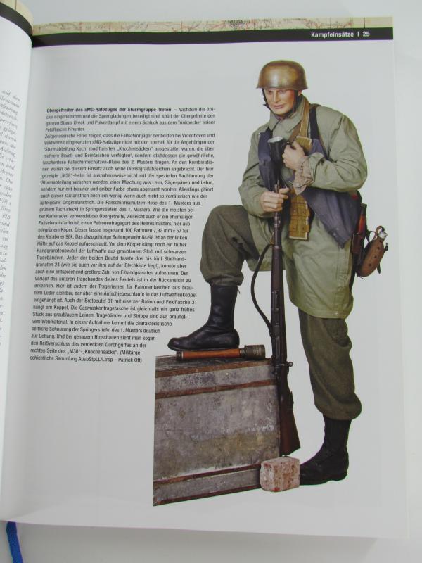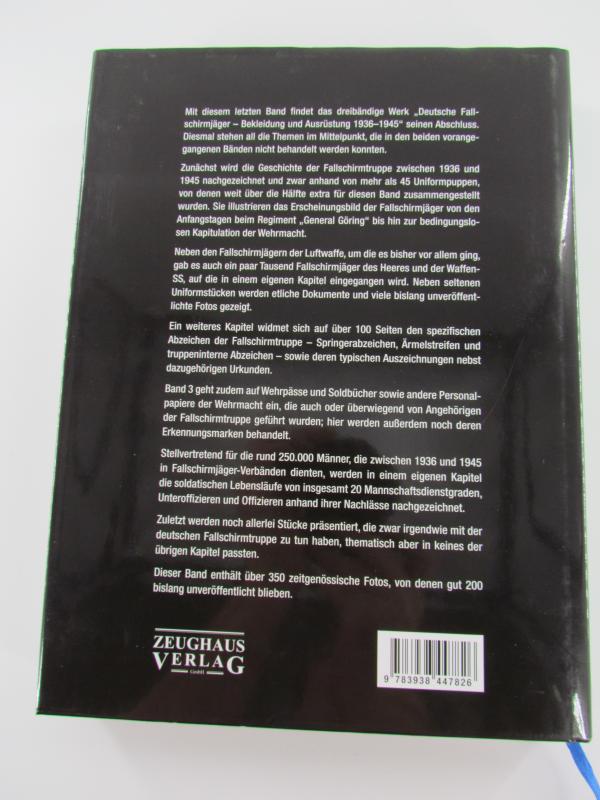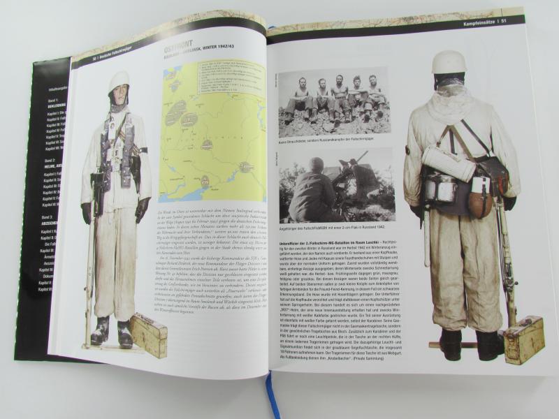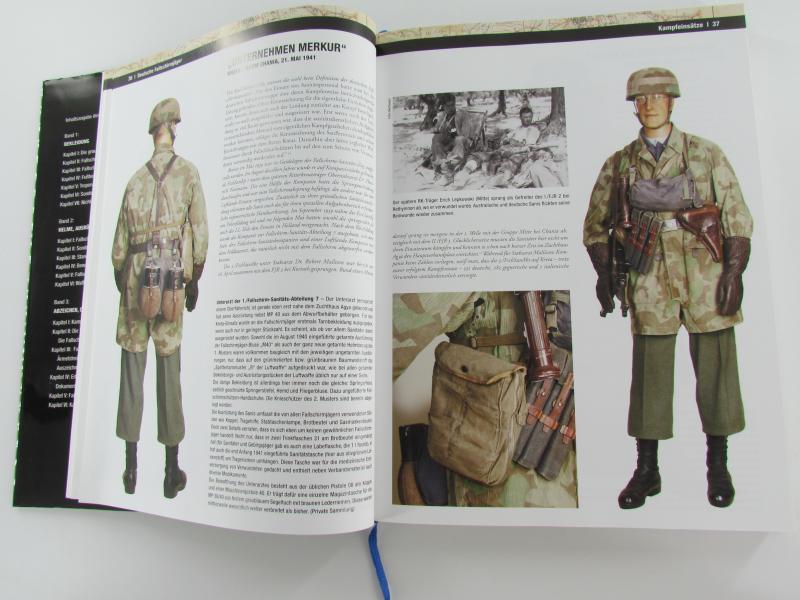 Deutsche Fallschirmjäger Uniformen and Ausrüstung 1936-1945` richtet sich gleichermaßen an Sammler, Uniformkundler und militärgeschichtlich interessierte Leser. Das in drei Bänden erscheinende Werk ist eine gründliche Studie der Uniform- und Ausrüstungsstücke, die in der deutschen Fallschirmtruppe getragen und verwendet wurden, von deren Anfängen bis hin zum Ende des Zweiten Weltkrieges. Des Weiteren werden sämtliche Abzeichen und Dokumente behandelt, die mit den Fallschirmjägern zu tun hatten, sowie schließlich deren Einsätze - vom belgischen Sperrfort Eben-Emael über Kreta, Nordafrika, Russland, Italien mit Monte Cassino, die Normandie und die Ardennen bis hin zu the letzten day Tagen des Nazi-Regimes.
