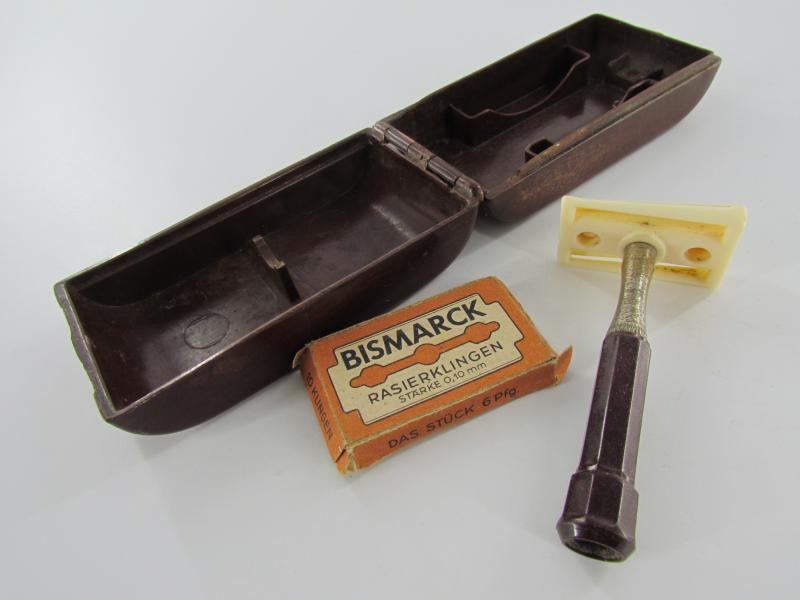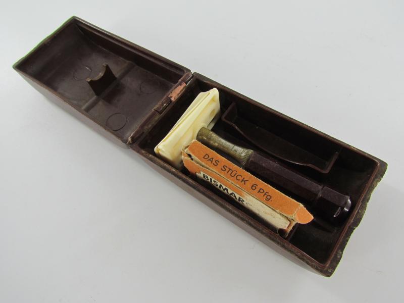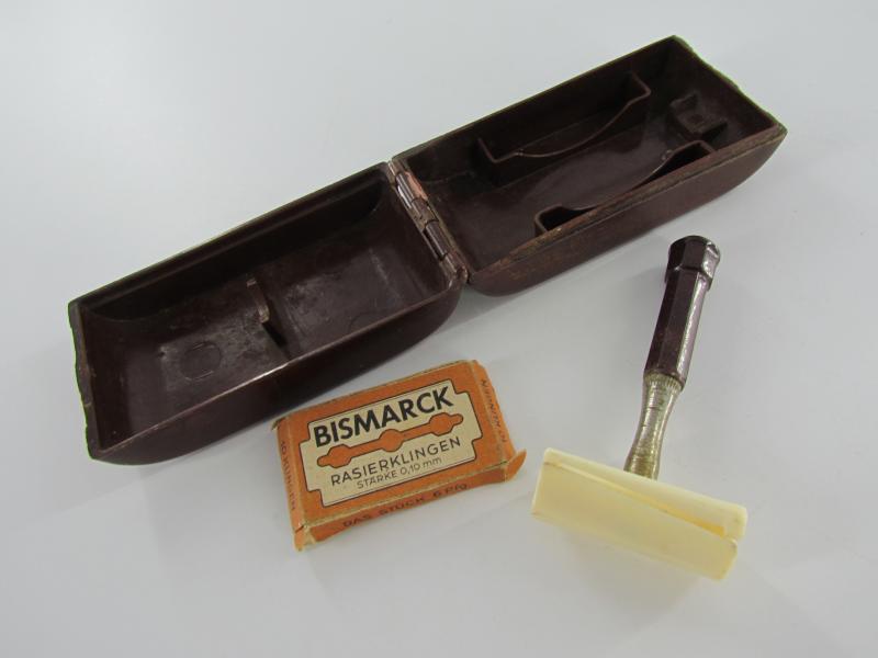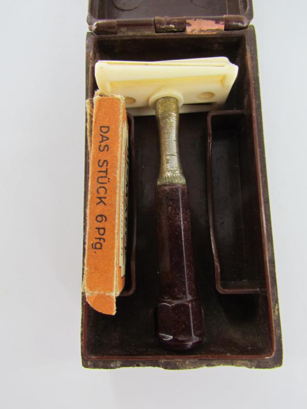 Shaving set in bakelite case Razor blades included Very nice to complete a display