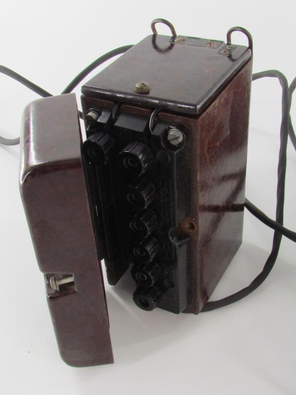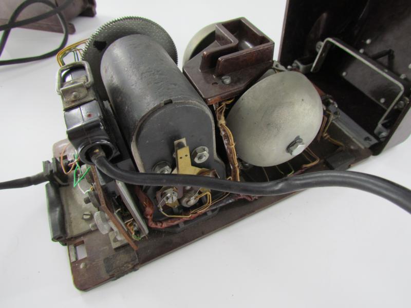 The desk telephone is complete with its original bakelite battery box and original cables.