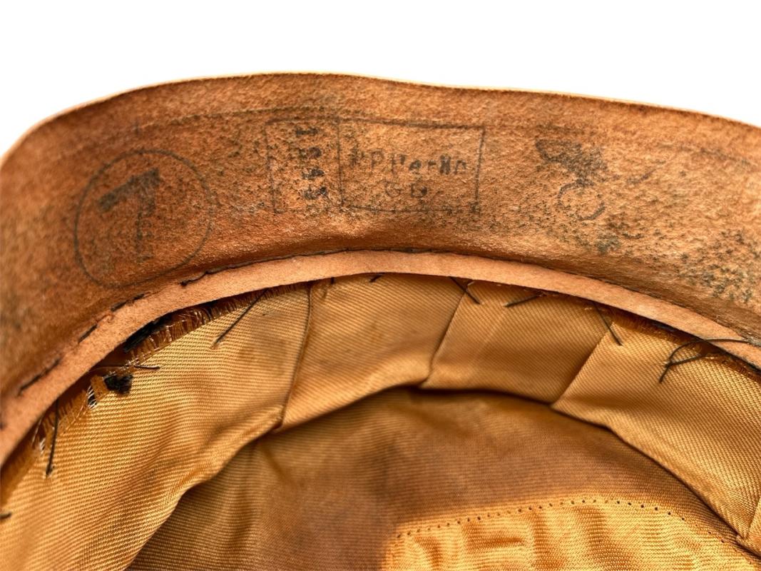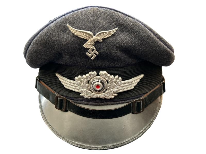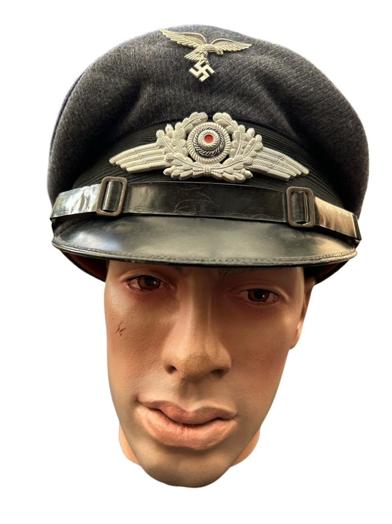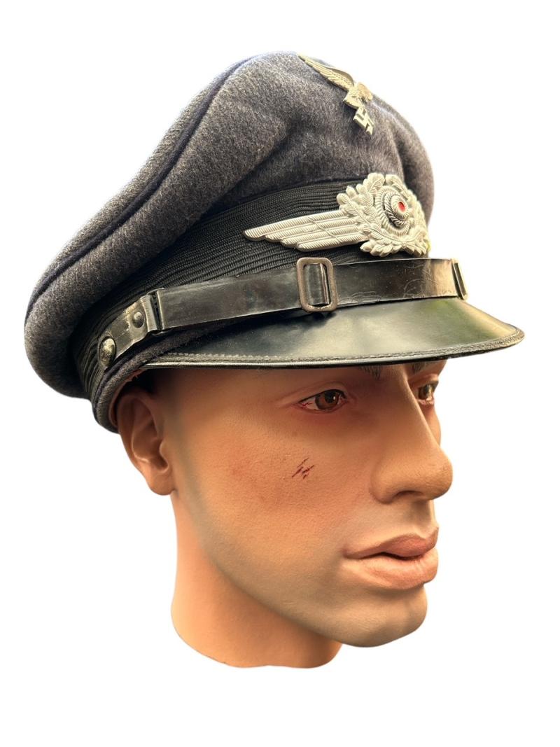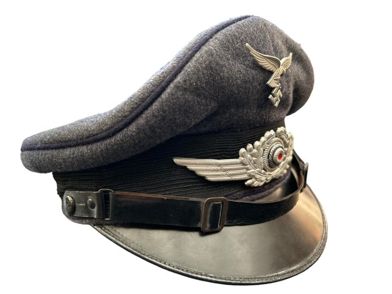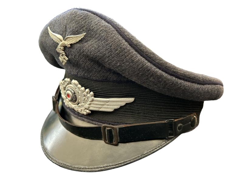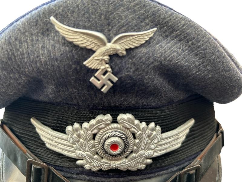 In a stunning condition : Luftwaffe EM/NCO medical ( Sanitäter ) Visor cap Originally applied metal insignia Markings inside but hard to read A very rare and hard to find visor cap!!