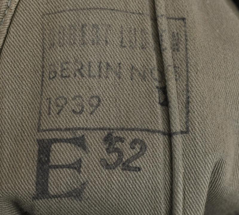 Inside the cap has the typical grey drill lining of the period. Cap is well marked with maker “Robert Lubstein, Berln 1939″ (EREL) it has a depot stamp E for the Erführt depot and a size stam”52”.