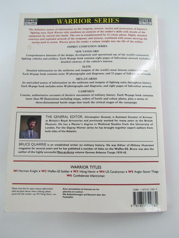 Probably the most highly motivated and ruthless combatant to take the field in World War 2, the Waffen-SS soldier was the cutting edge of Germany's military might. Aggressive in attack, dogged in defence, his units generally suffered higher casualties than the regular army formations. The apple of the Führer's eye, he was the first to receive the best available equipment and was expected to produce results to match. From the green fields of France to the freezing steppes of Russia and finally to the shattered streets of Berlin this title details the development of the weapons, equipment and tactics of one of history's most formidable soldiers.