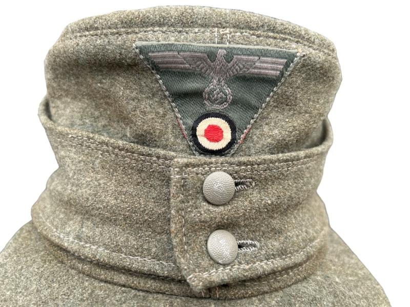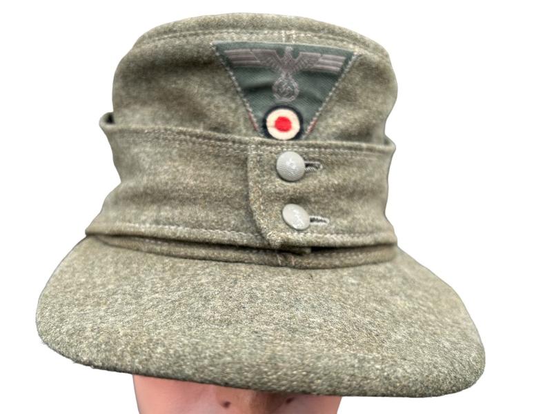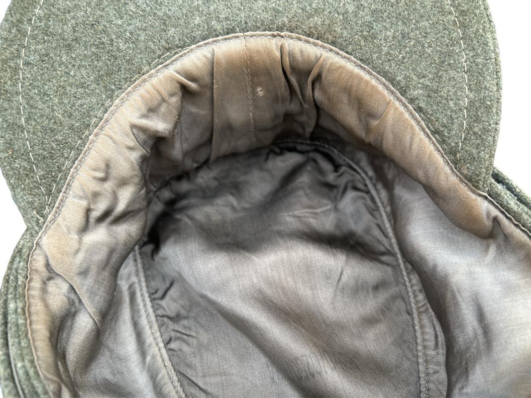 A very nice example of a Heer M43 cap in great condition! The cap has its originally sewn Trapezoid insignia without any flaws. The cap is nicely marked with an RBNR Size : 57