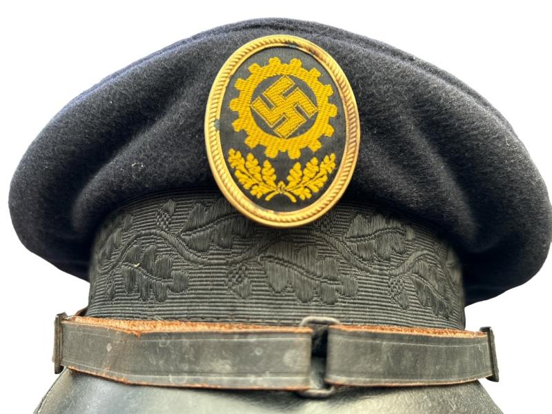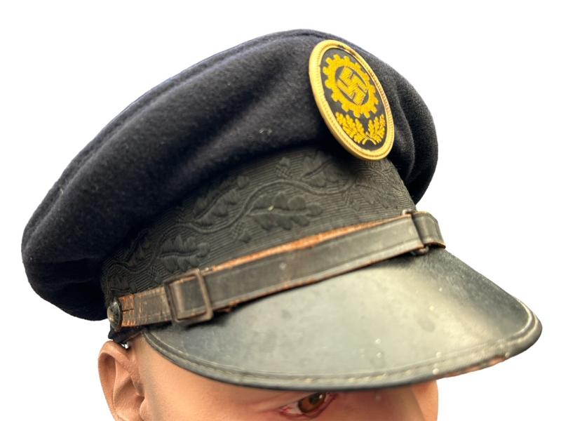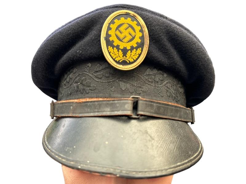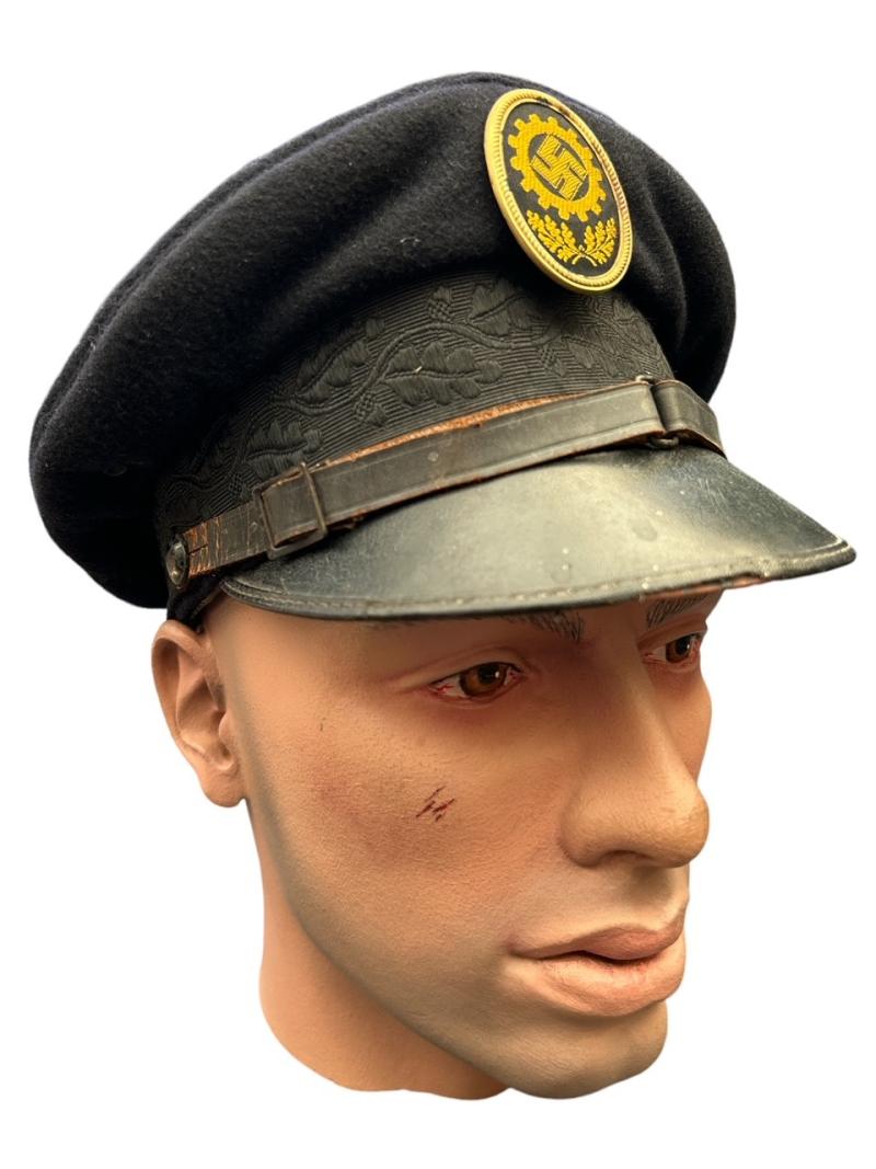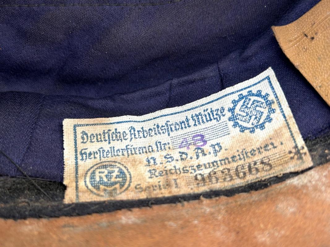 DAF Visor Cap “Deutsche Arbeids Front” Nice used DAF visor cap with its original DAF cap badge and RZM label inside Size : 55 Overal nice used visor cap in good condition.