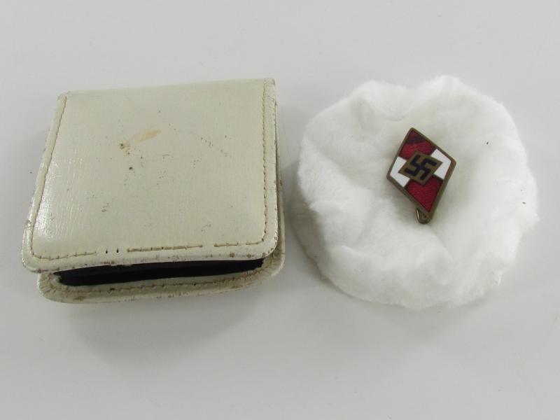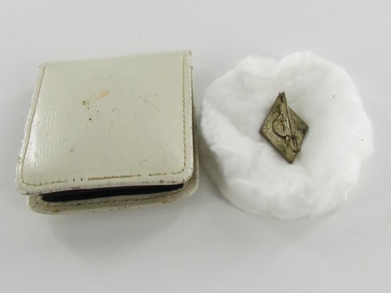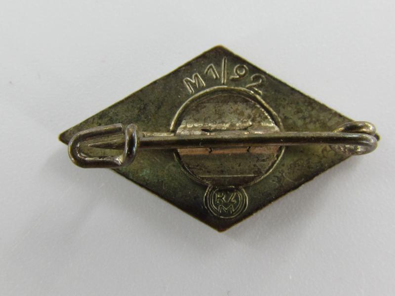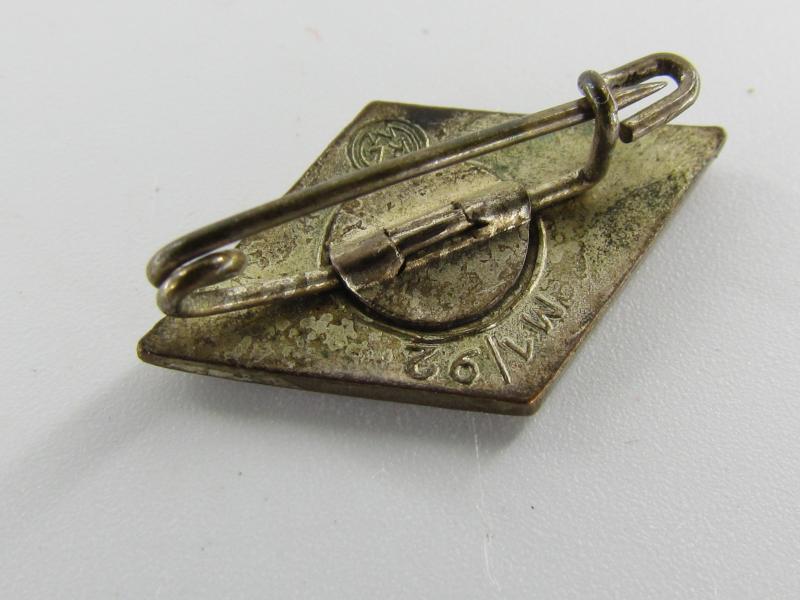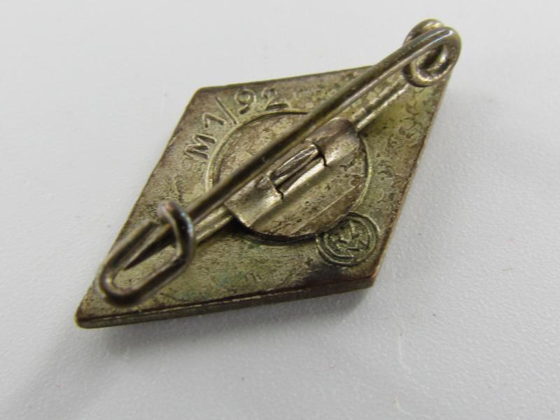Hitler Jugend member badge, marked M 1/92 RZM, by Carl Wild-Hamburg Found in the small white pouch which comes with it.
