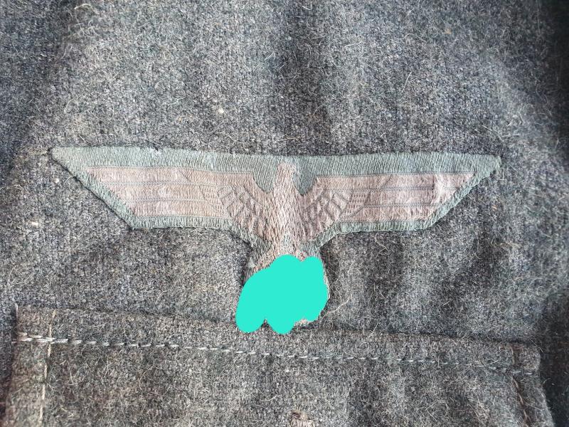 The collar tabs are machine sewn and the eagle is very nicely handsewn, imo wartime.