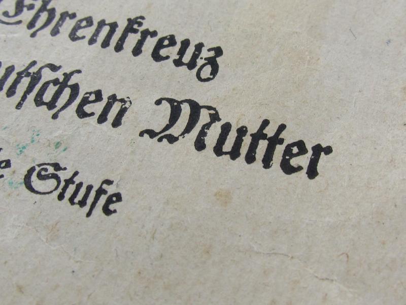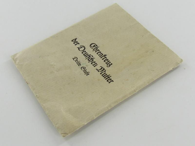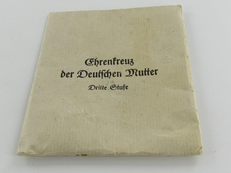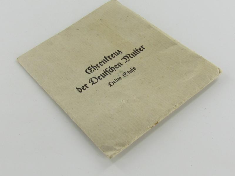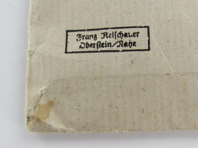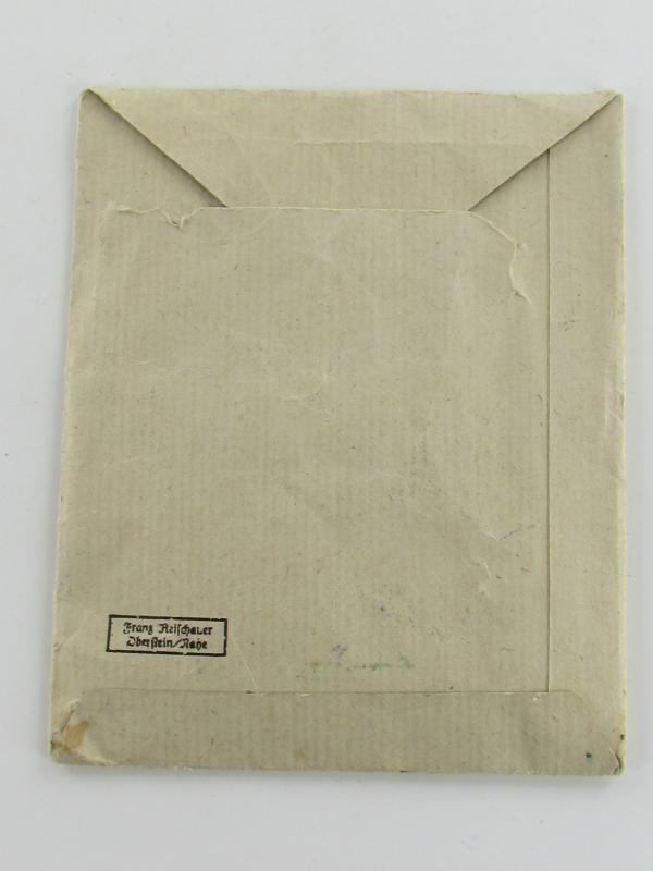 Paper bag intended for : 'Ehrenkreuz der deutschen Mutter - dritte Stufe' (or: bronze-class mothers'-cross) by the maker: 'Franz Reisschauer - Oberstein/Nahe'