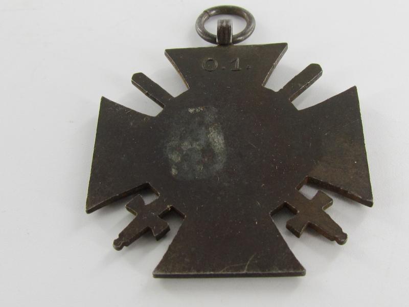 Commemorative cross for WW1 for combatant Ehrenkreuz für Frontkämpfer 1914-1918 Maker marked 0.1.