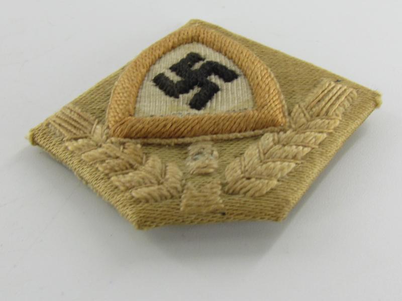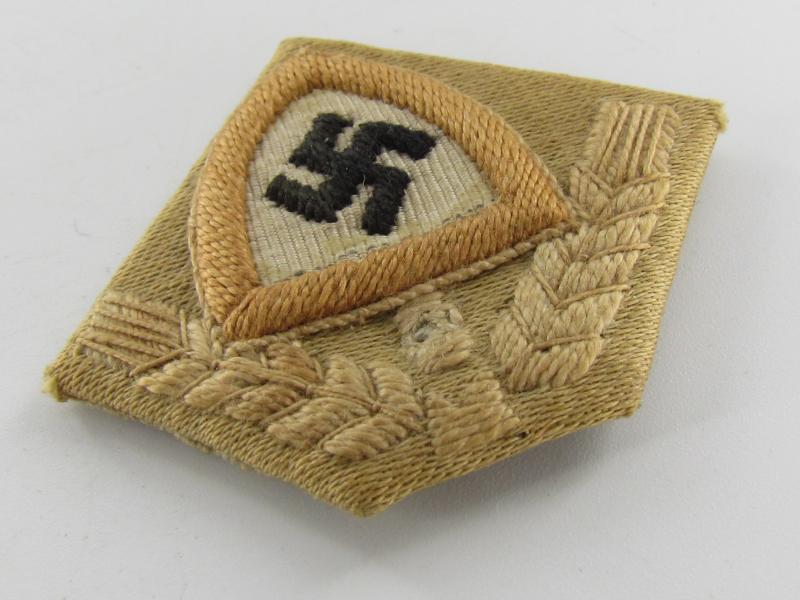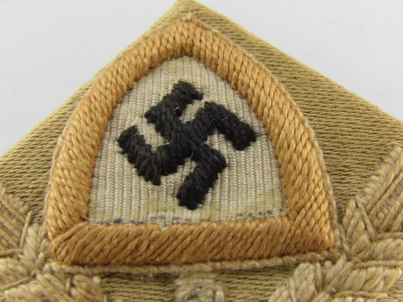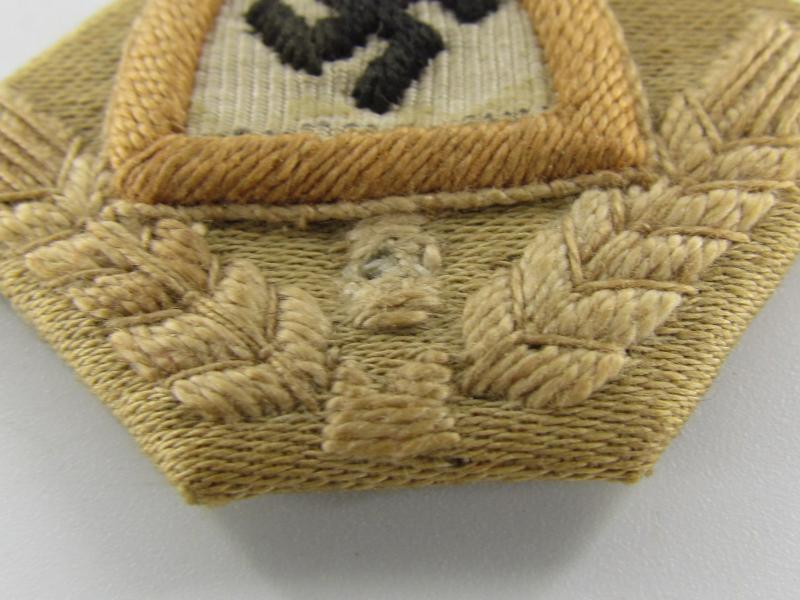This is a RAD ('Reichsarbeitsdienst') Cap Badge. These badges were used on the RAD overseas cap or M43 cap. The cap-badge is nicely machine-embroidered in a very good condition