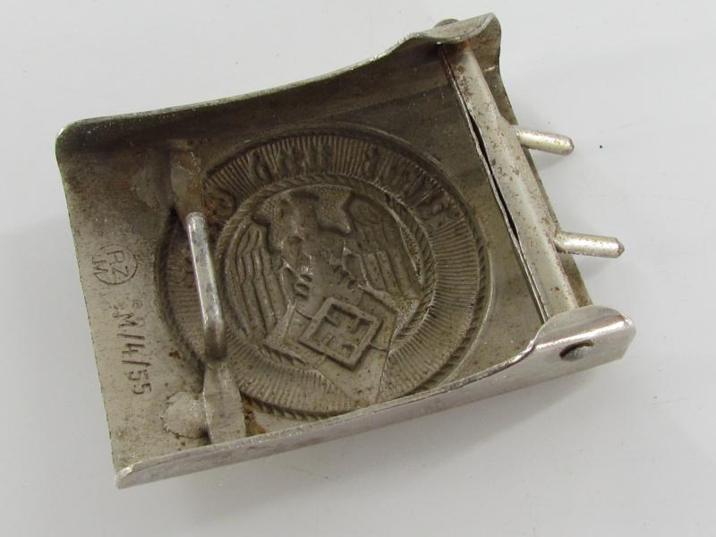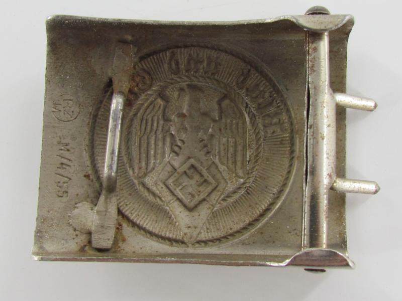 Original and light worn HJ buckle in good condition. Steel construction with chrome finish. Maker marked by RZM M4/55 (Julius Kremp, Lüdenscheid).