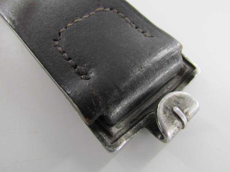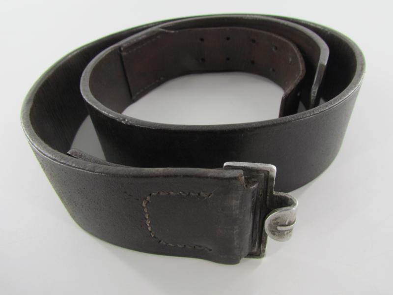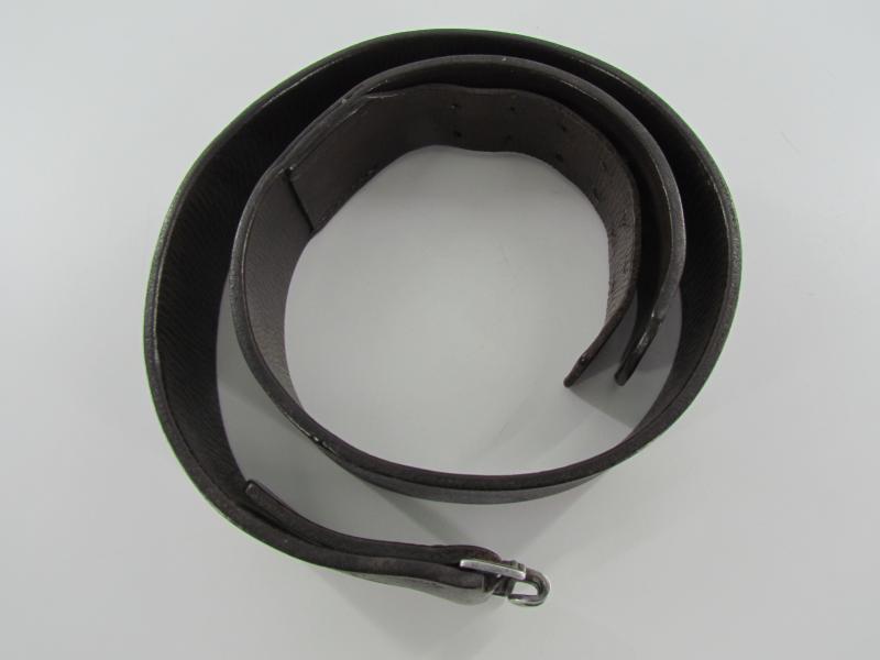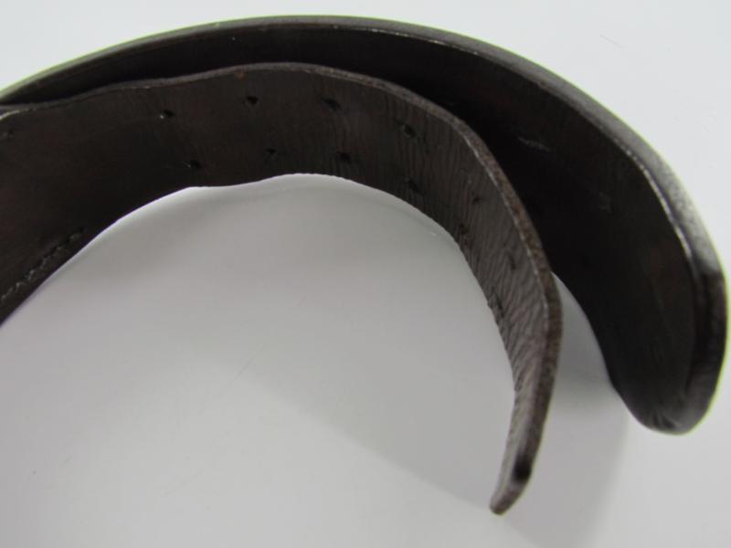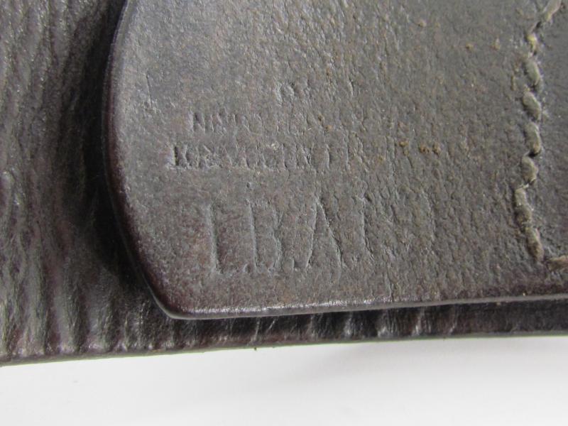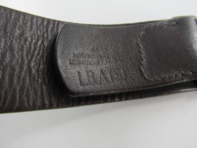 Early choclate brown Luftwaffe equipment belt Maker marked example with aluminum belt hook but very hard to read Also LBA marked Length about 92 cm in used but good condition