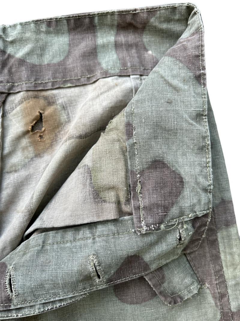 These trousers are made from Italian camo fabric and can be seen in used with several Wehrmacht and SS units in the later stages of the war.