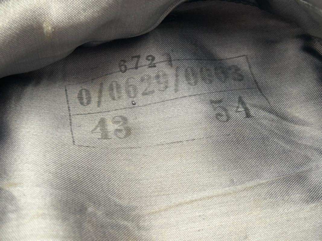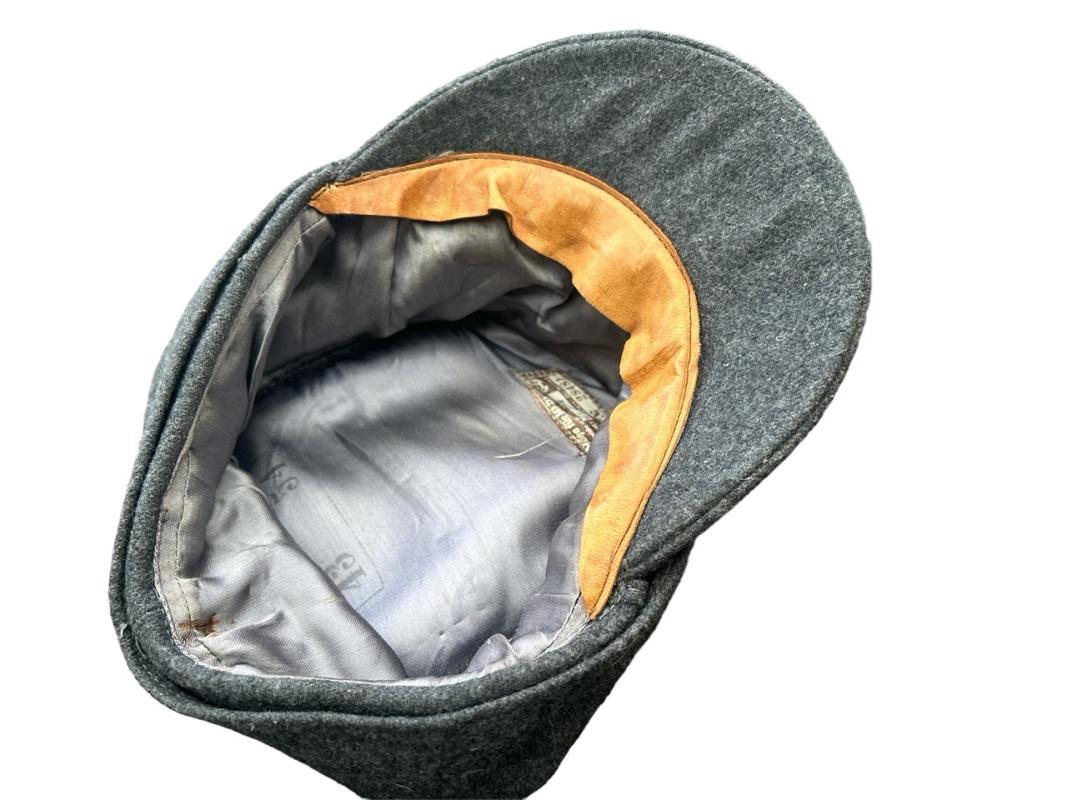 It’s well marked, with the manufacturer indicated by the stamped RB number 0/0629/0003. The stamped size of the cap is 54, and the cap is dated 1943