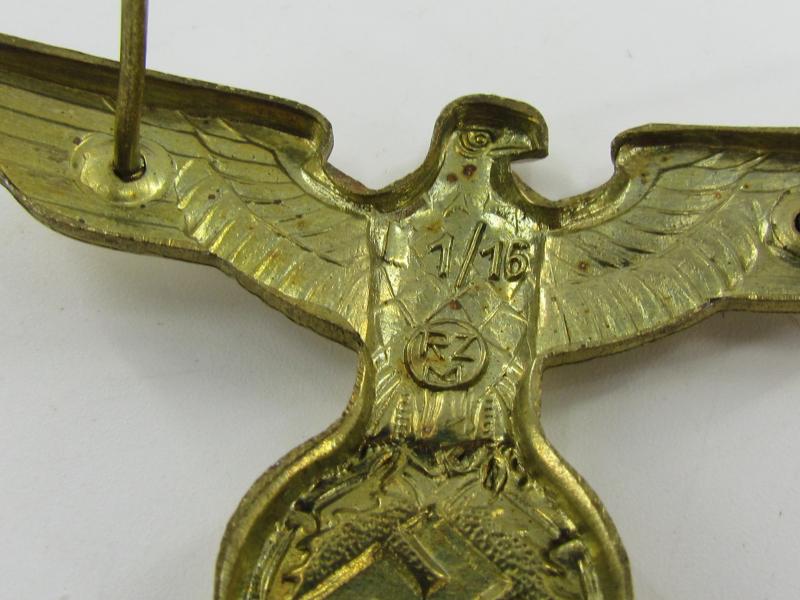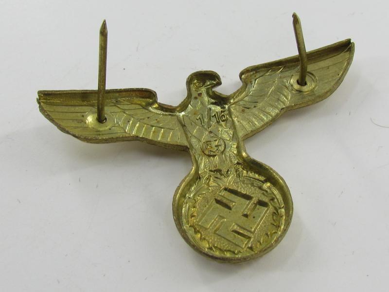 Reichsbahn/Reichspost Visor Cap Eagle (Mützenadler). This is the larger type cap eagle having a wingspan of 56mm.