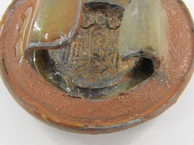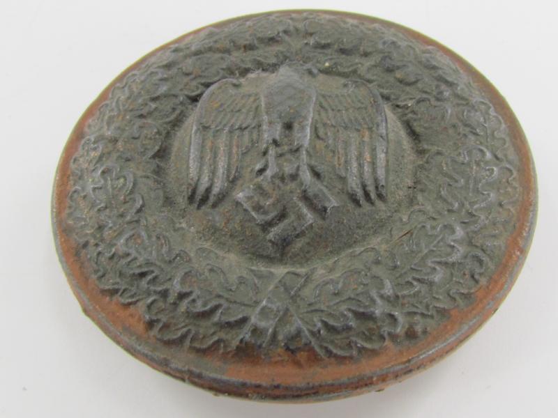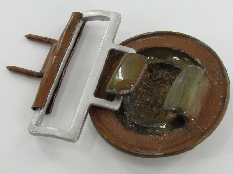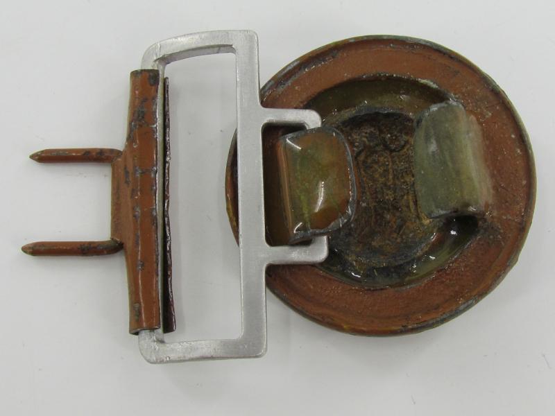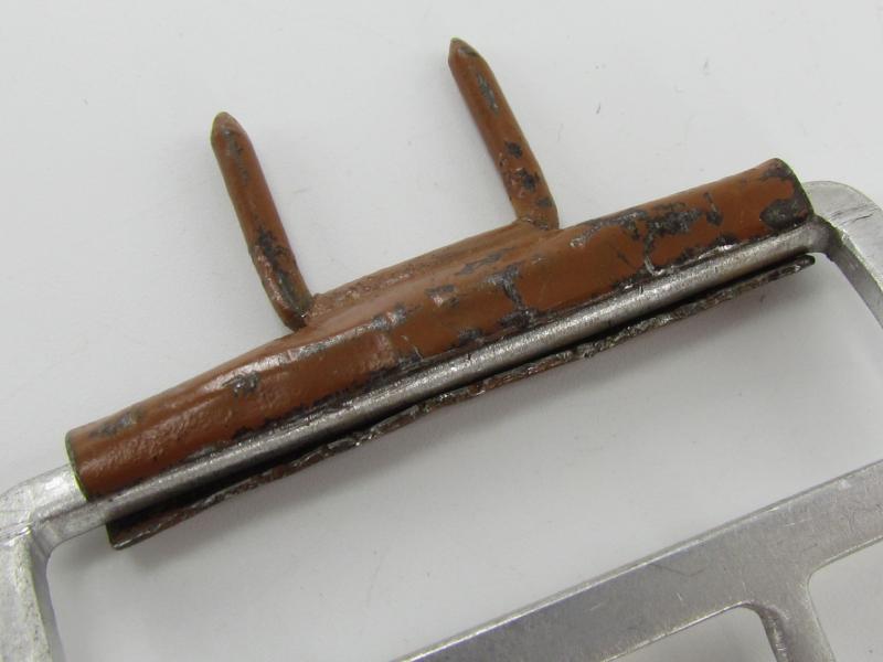 Partly repaired Tropical ( DAK ) Officer Field Belt Buckle. The aluminum buckle-keeper is repaired either in the war or postwar, hence the price. nice for display