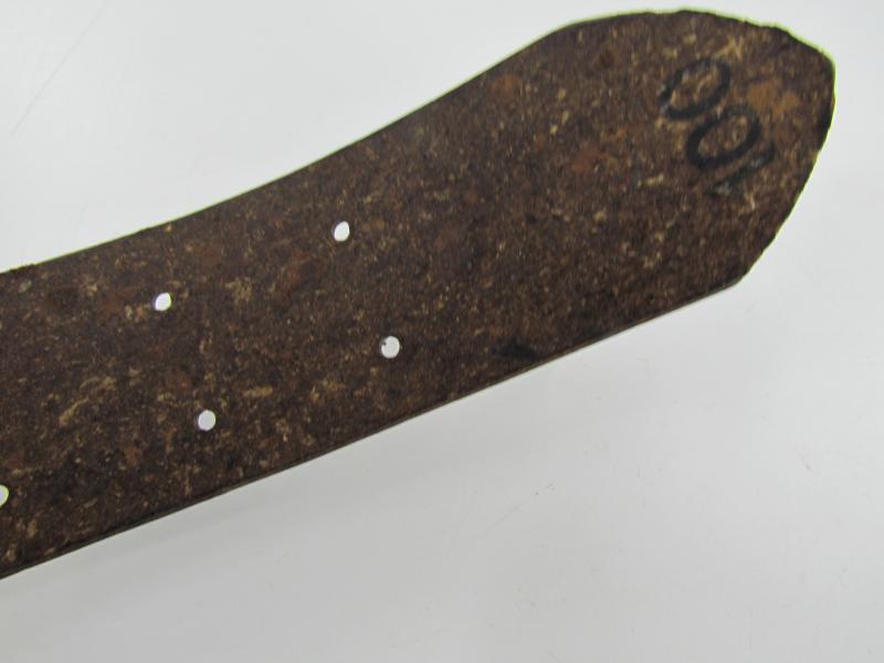 Very unique and seldom seen late war officer belt in Preßstoff. The belt remains in unissued condition and looks beautiful. Silver coated zink double claw belt buckle remains in excellent condition and shows no maker mark. Size marked 100.