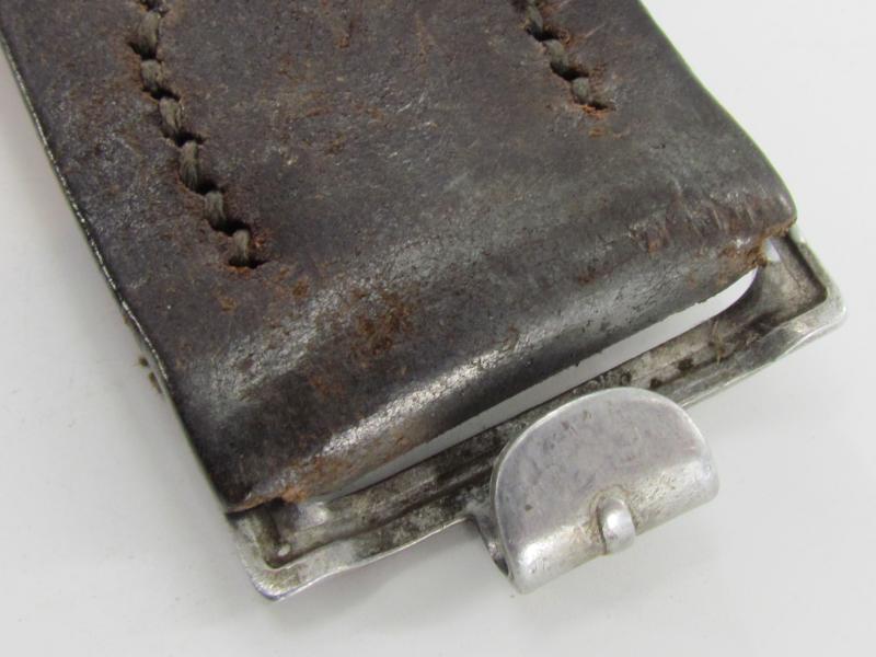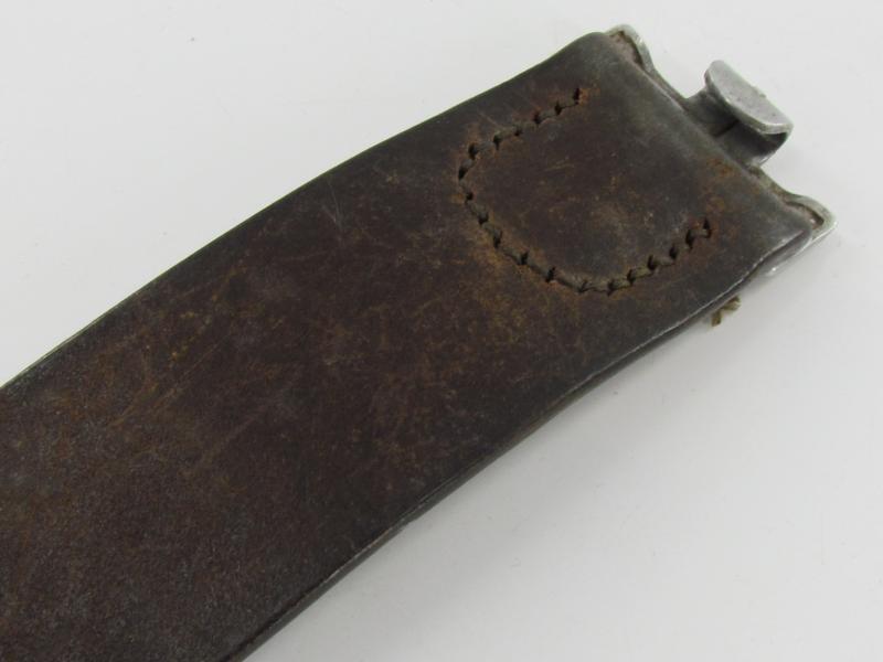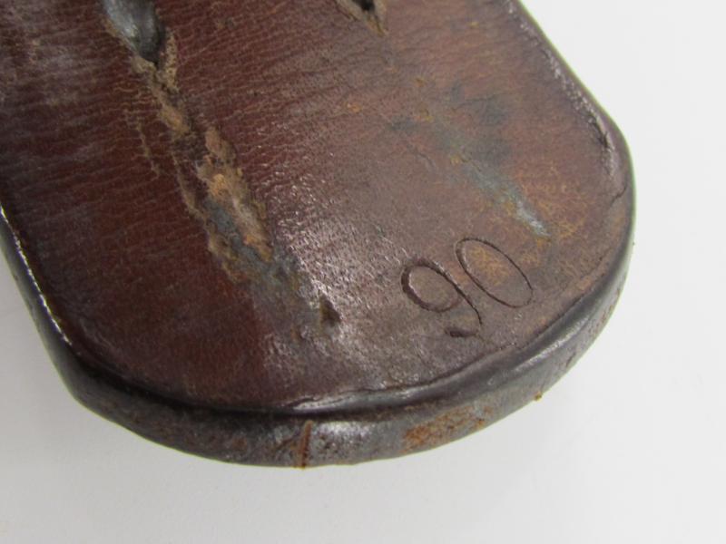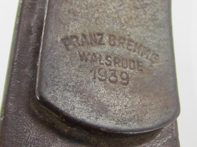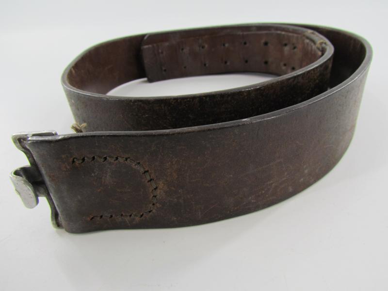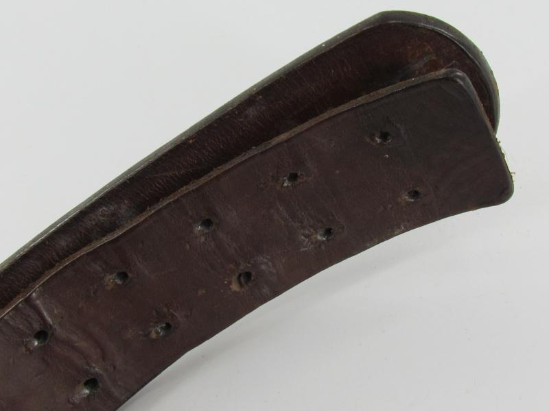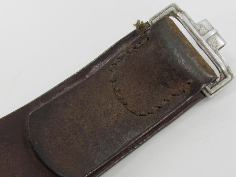 The belt shows overall normal signs of use. The leather is supple and solid. It's marked by the maker Franz Brehme Walsrode 1939 and size marked '90'. in used but good condition