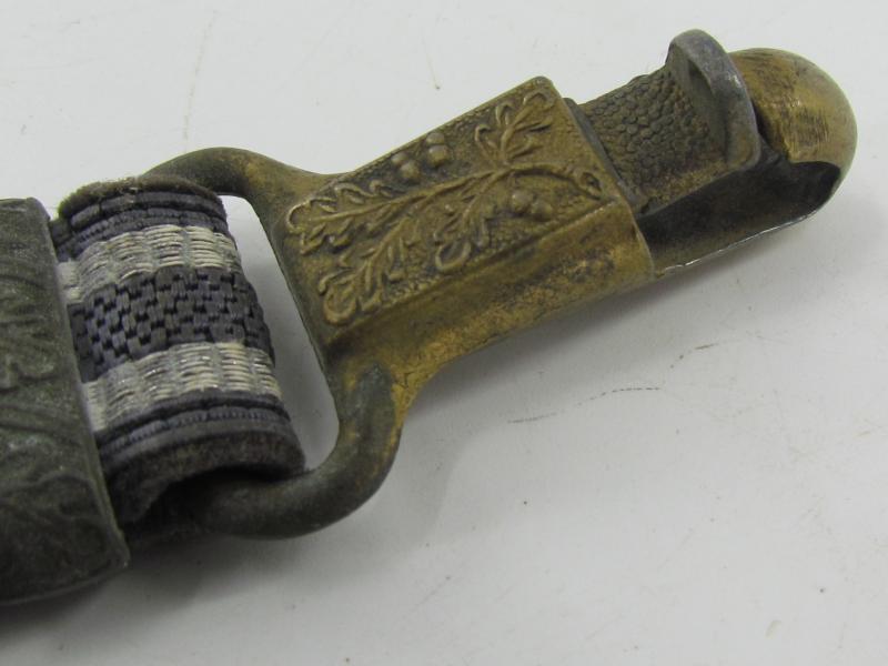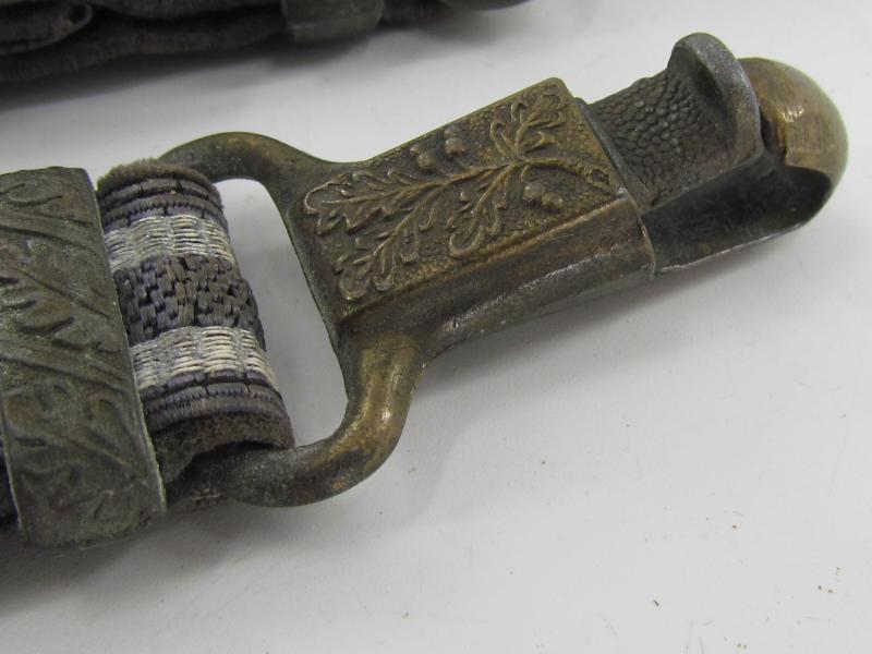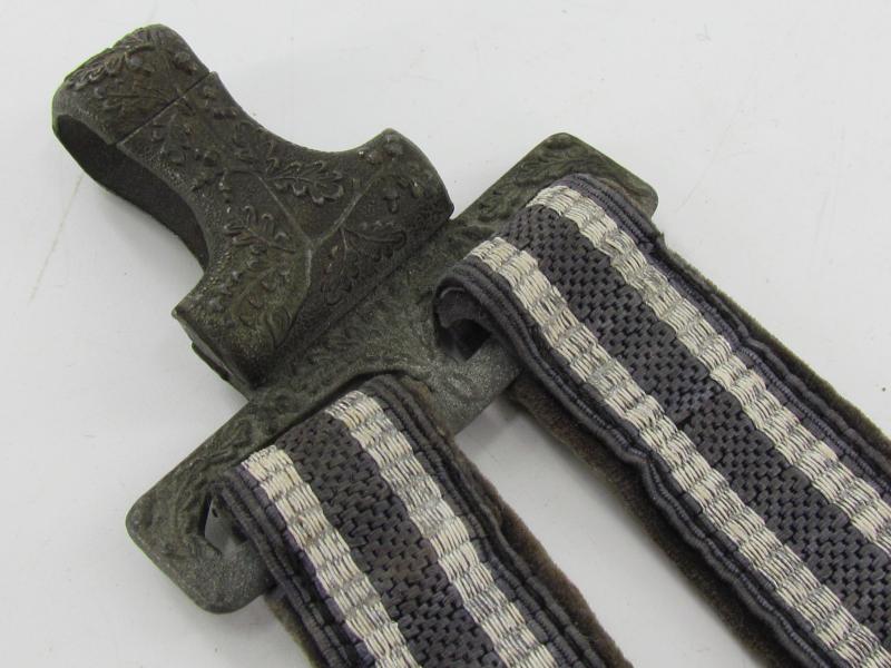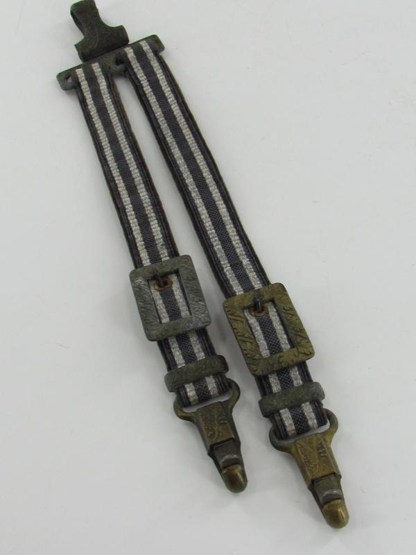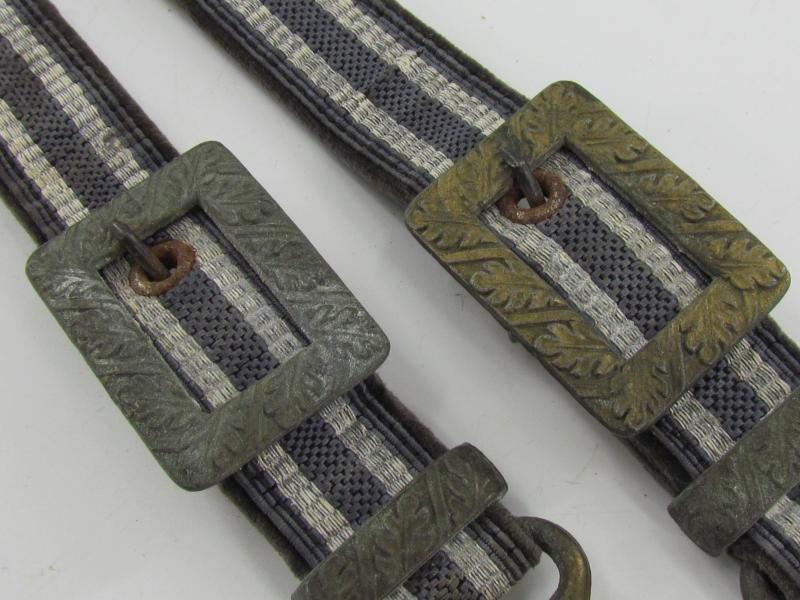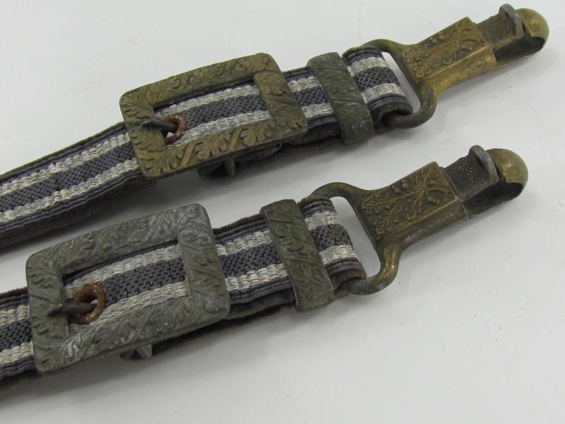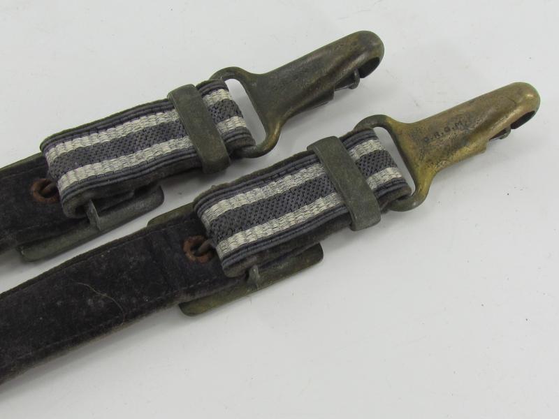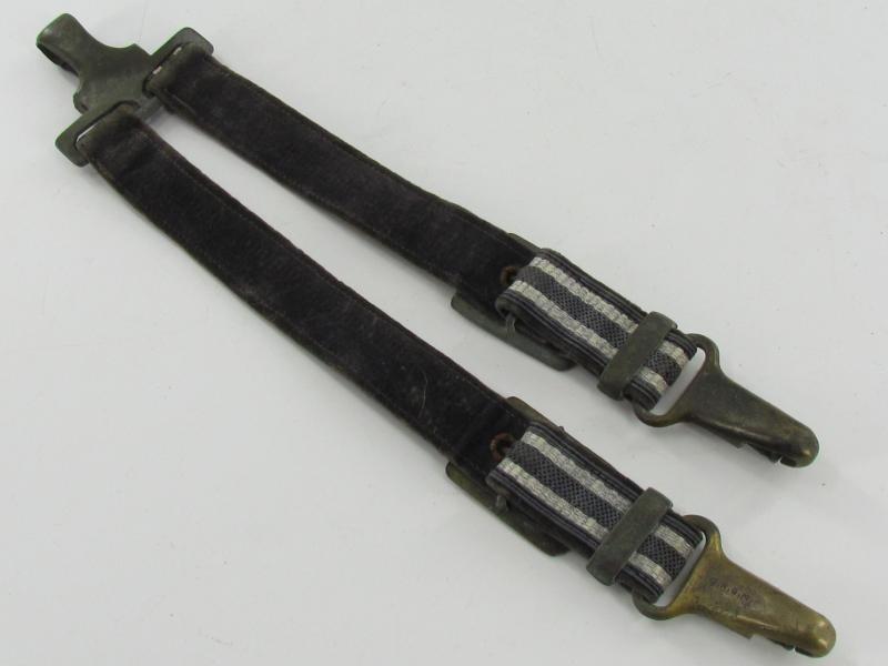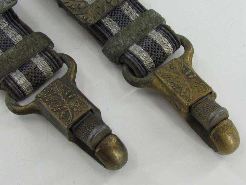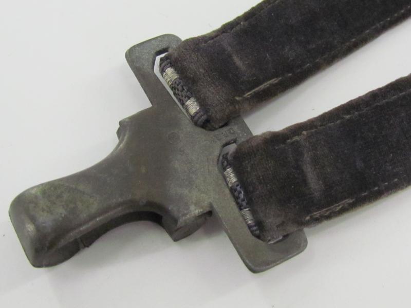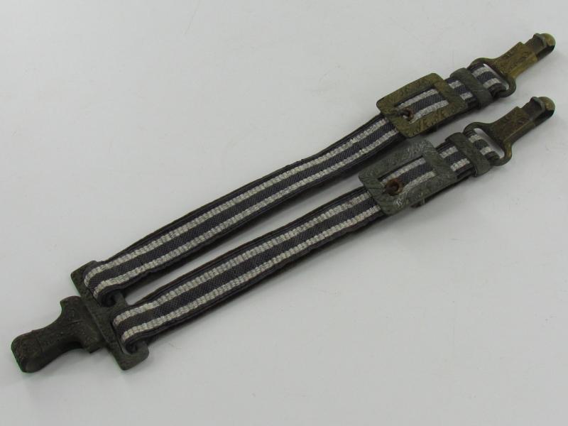 Very nice pair of worn dagger hangers for a Luftwaffe second pattern officer dagger. Maker marked on the reverse by U.E.10 RZM D.R.G.M. All metal parts are executed in zinc
