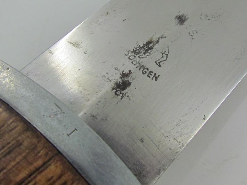 Early Nickel fittings, lower guard with "I" stamp. The Dagger has the maker mark on the blade: E.P.&S. in Solingen. ( faded )