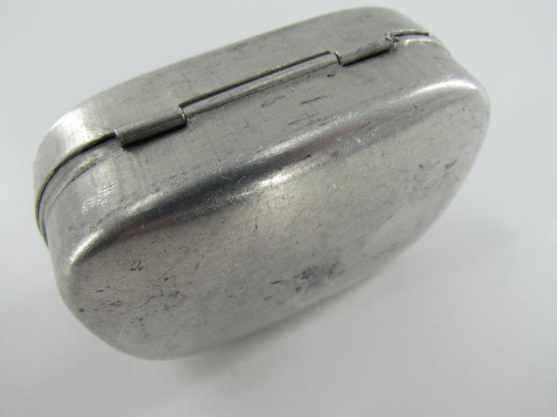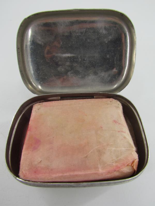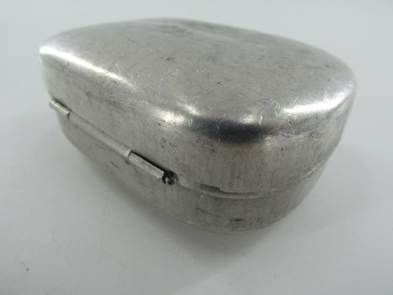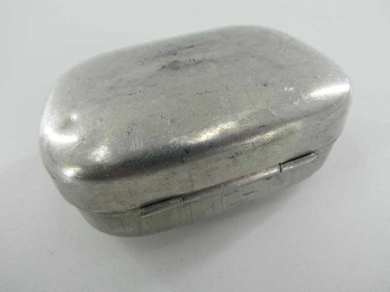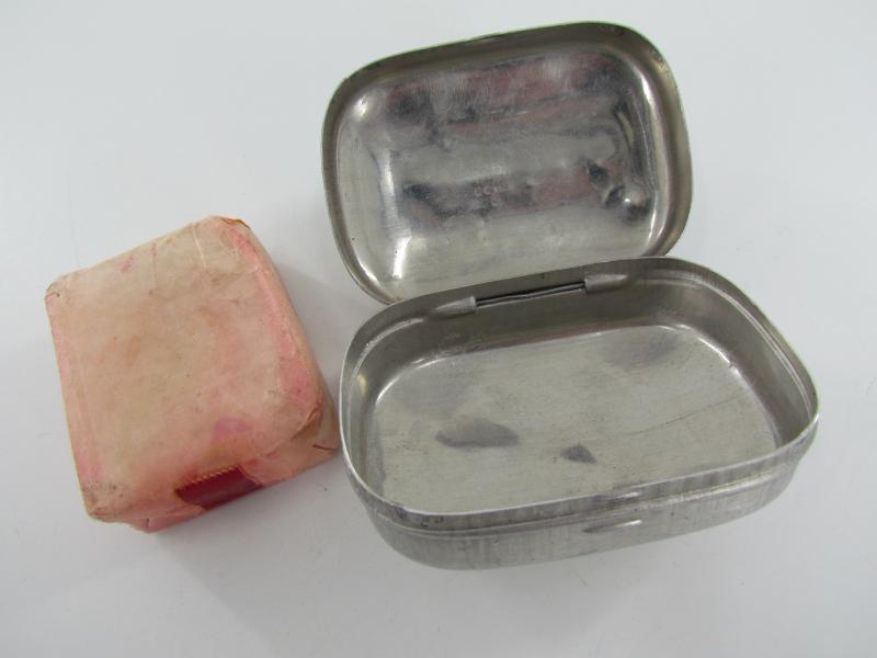 British WW2 Metal Soap Container Nice metal British WW2 soap container, with maker markings and nicely dated "1945" Soap also included in very good condition.
