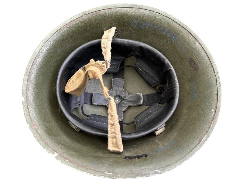 With its original liner maker marked and dated “1939” and with its original helmet strap.