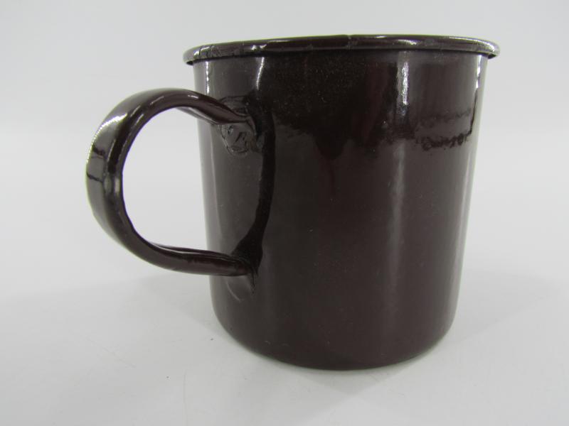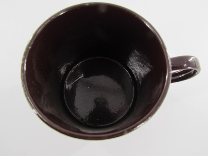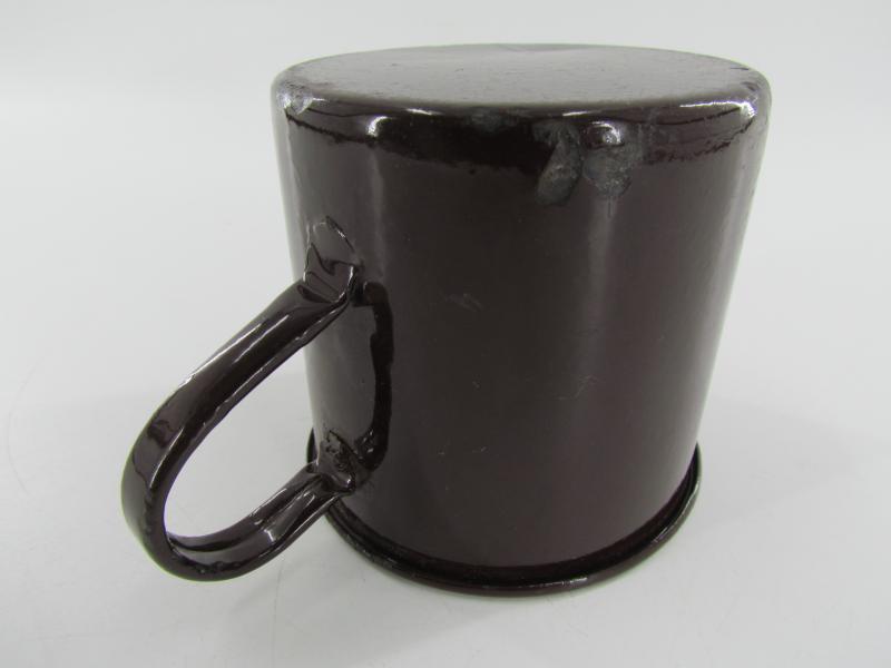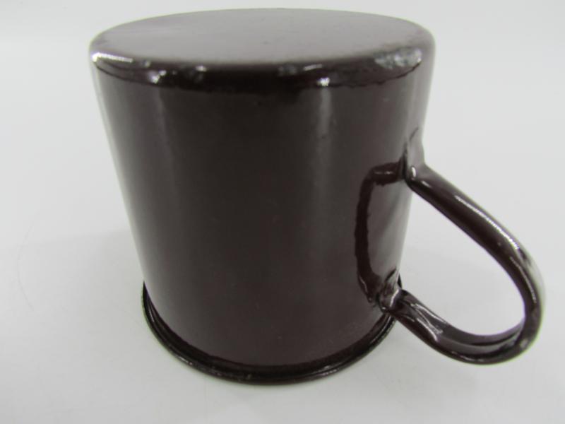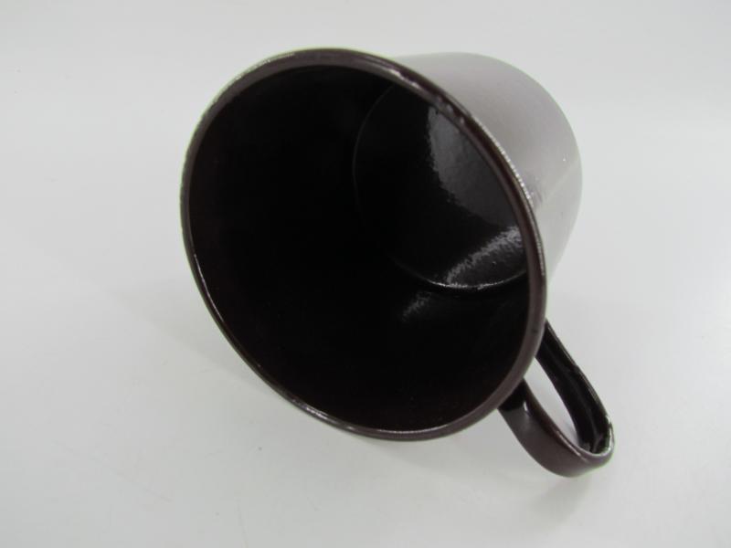 British drinking mug made of metal with a gloss brown enamel finish in a very good condition